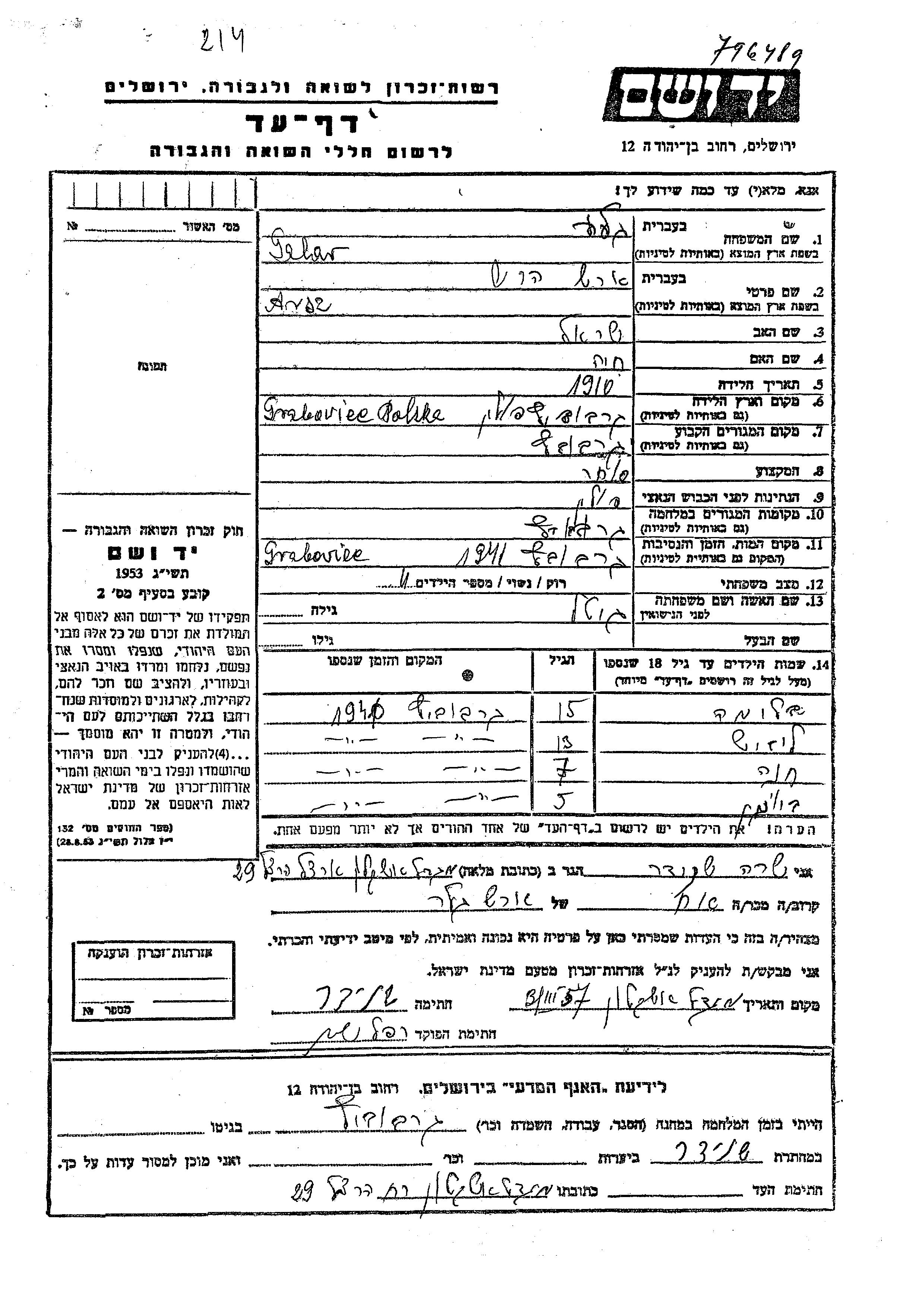 Яд Вашем - Листы свидетельских показаний Мемориального фонда