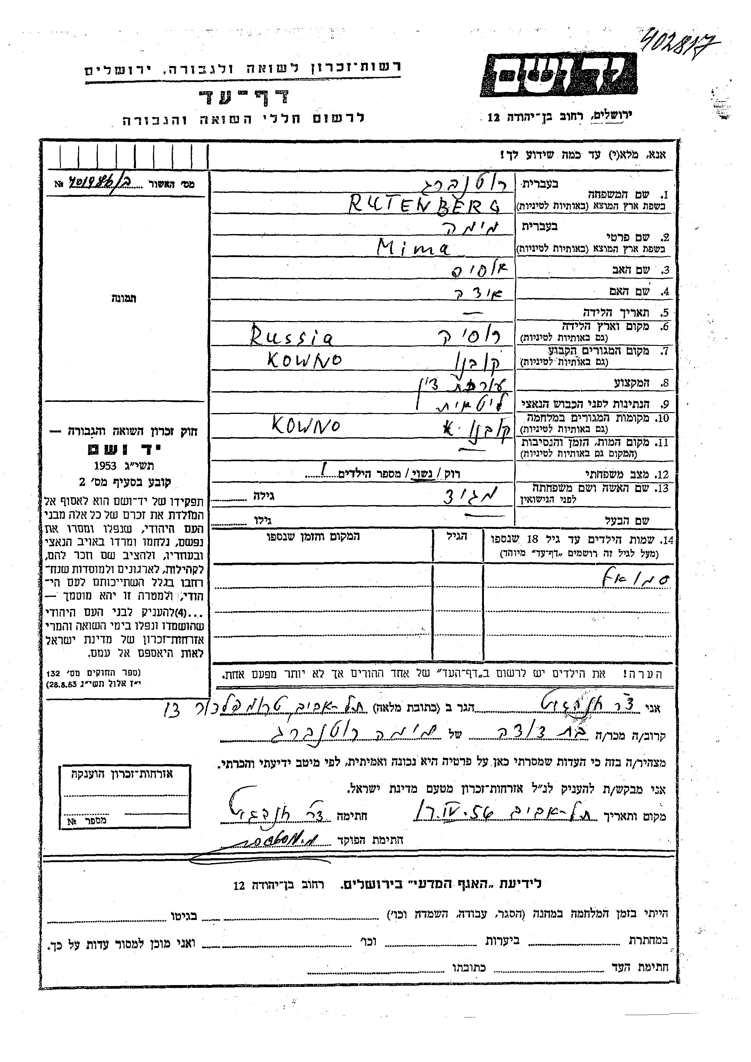 Самуэль Рутенберг Мима девичья фамилия Магид. Ребенок. Место жительства до войны: Каунас, Литва. Место во время войны: Каунас, Литва.