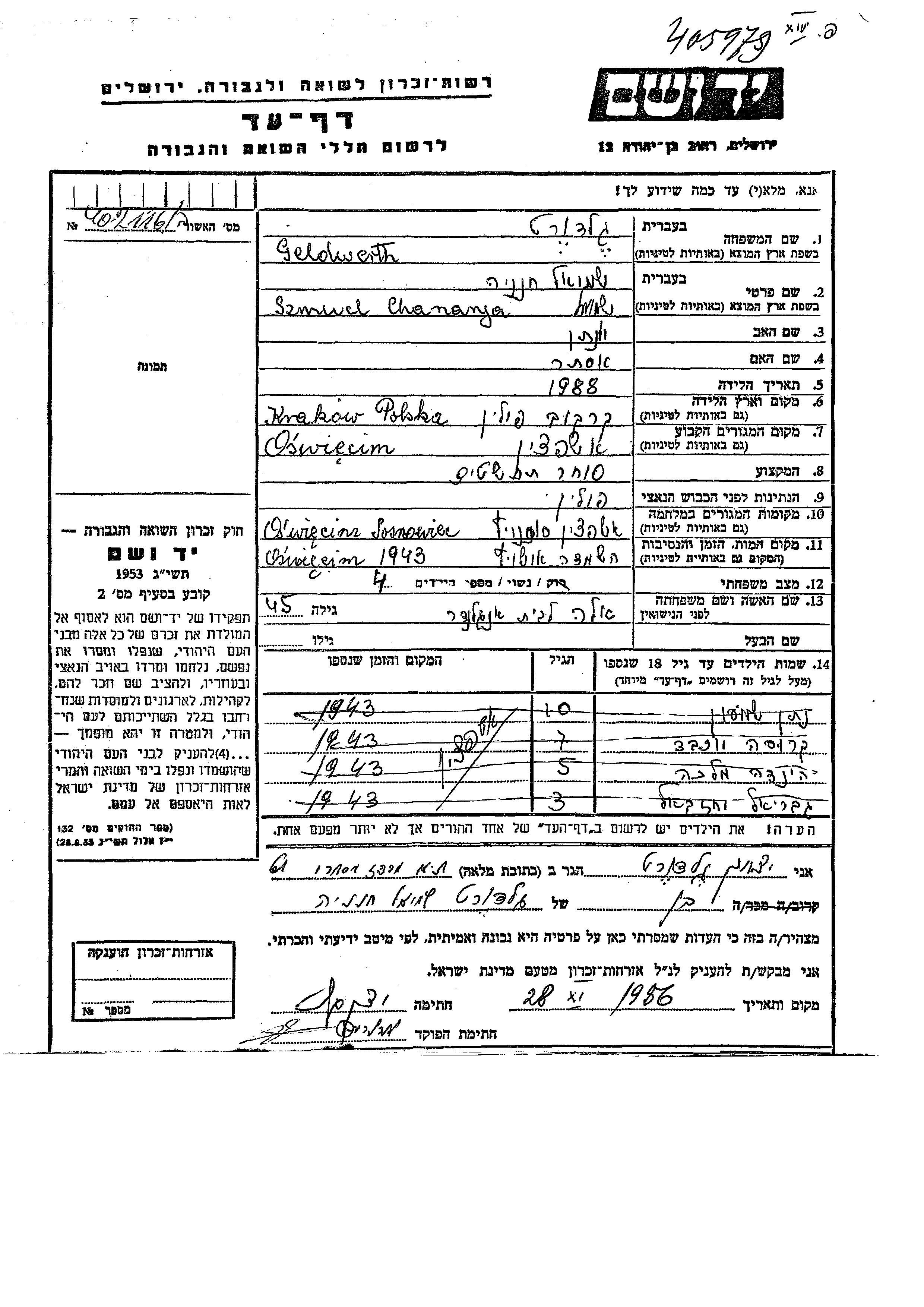 Яд Вашем - Листы свидетельских показаний Мемориального фонда