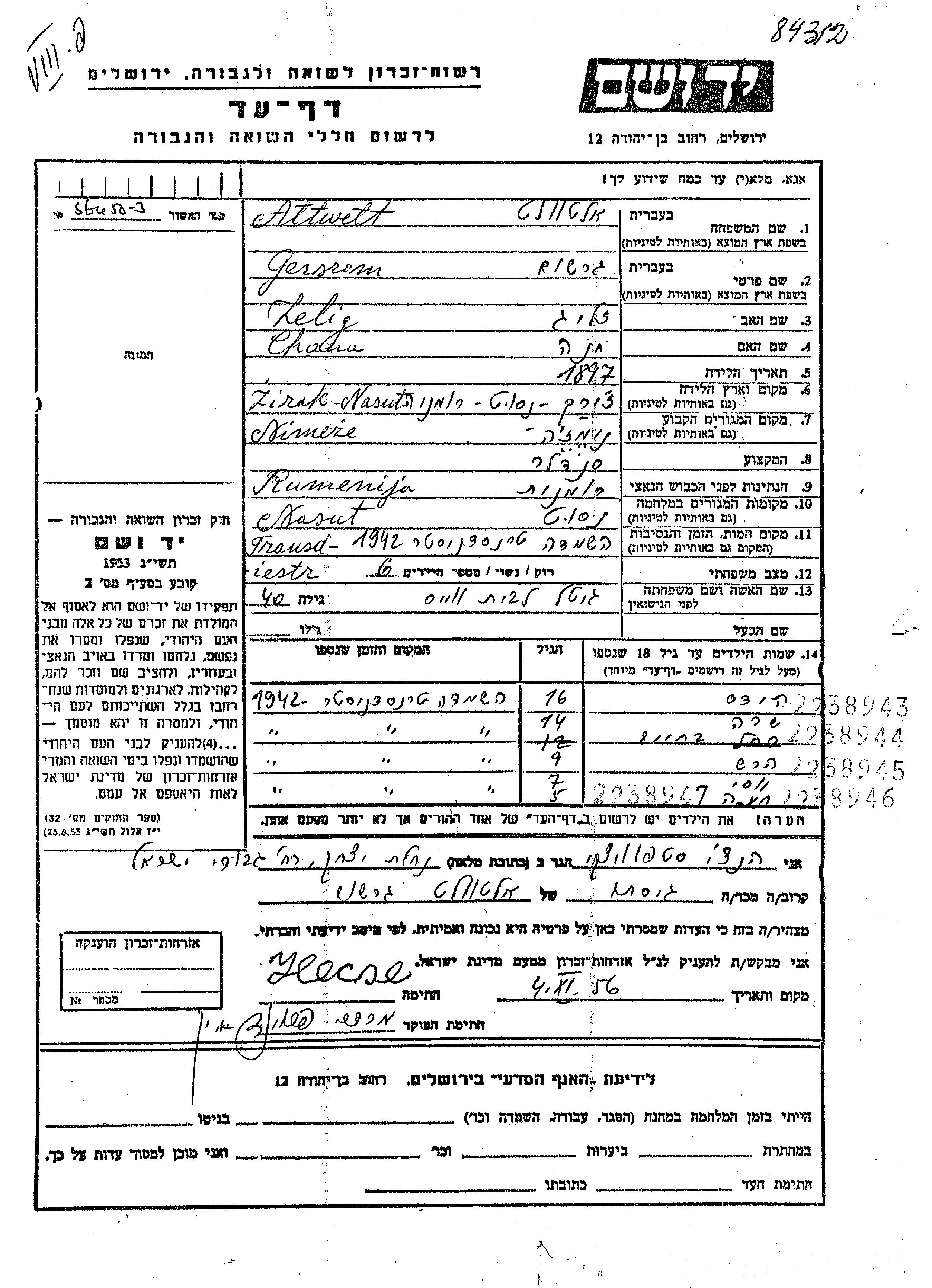 Яд Вашем - Листы свидетельских показаний Мемориального фонда