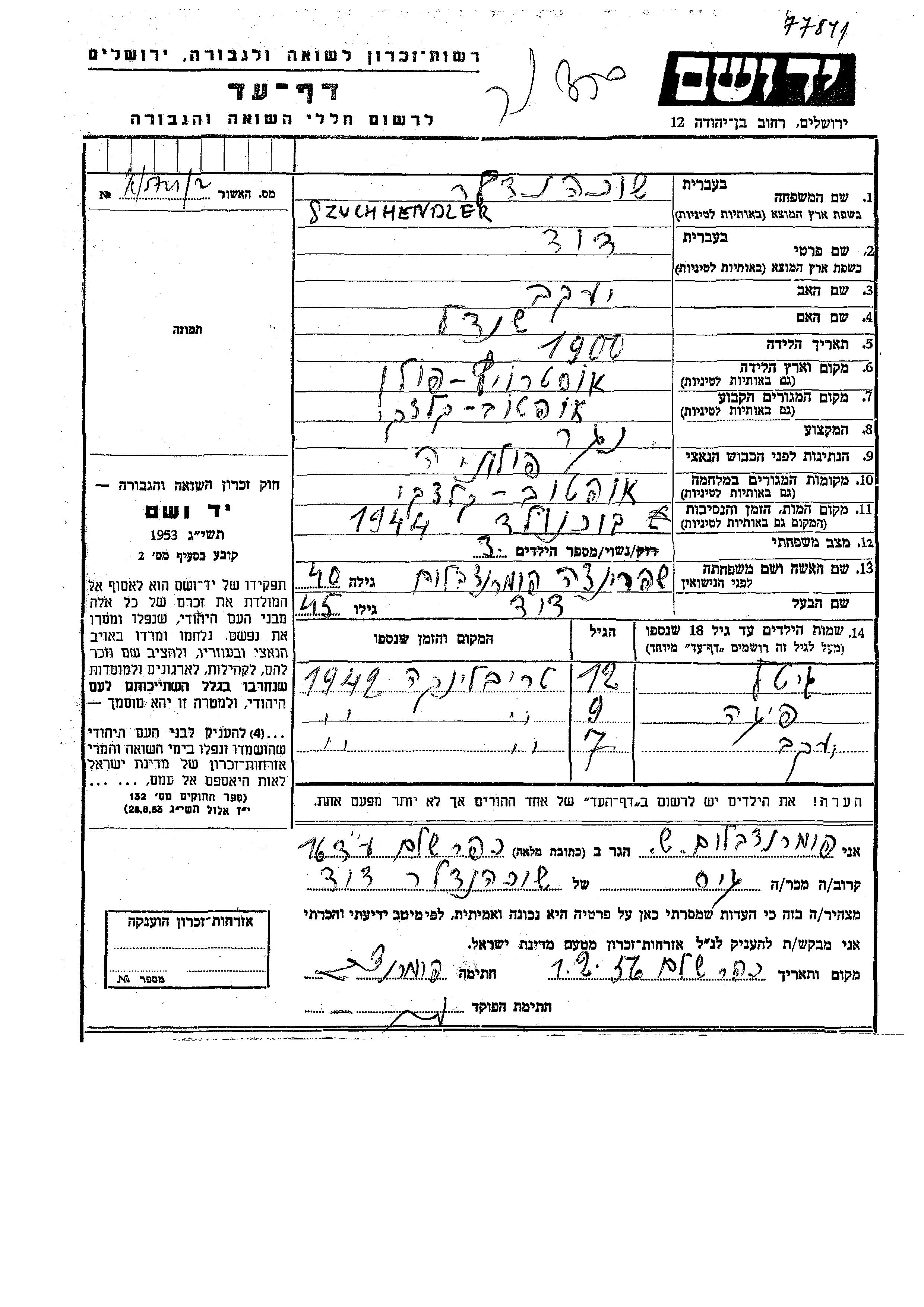 Яд Вашем - Листы свидетельских показаний Мемориального фонда