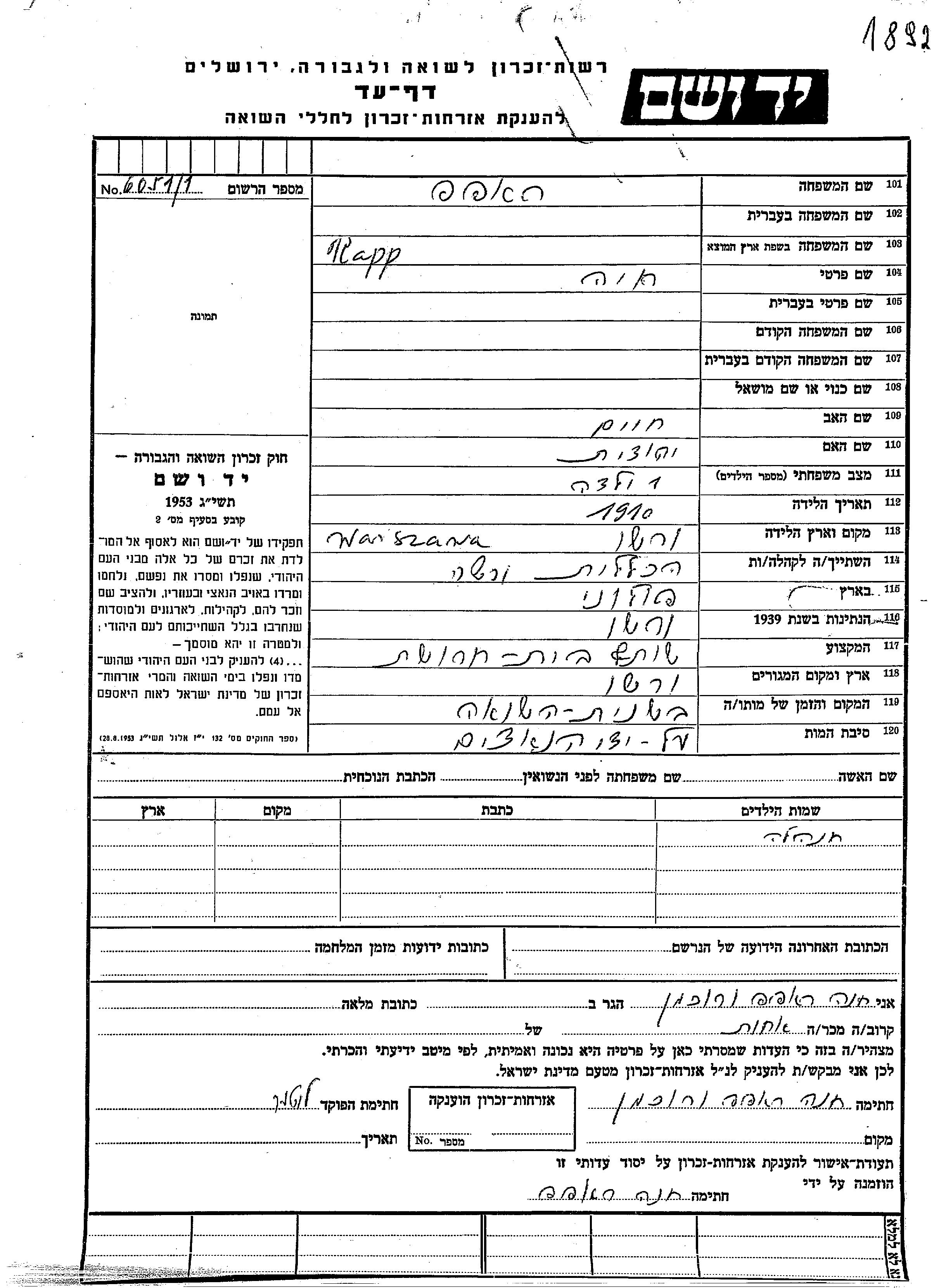 Яд Вашем - Листы свидетельских показаний Мемориального фонда