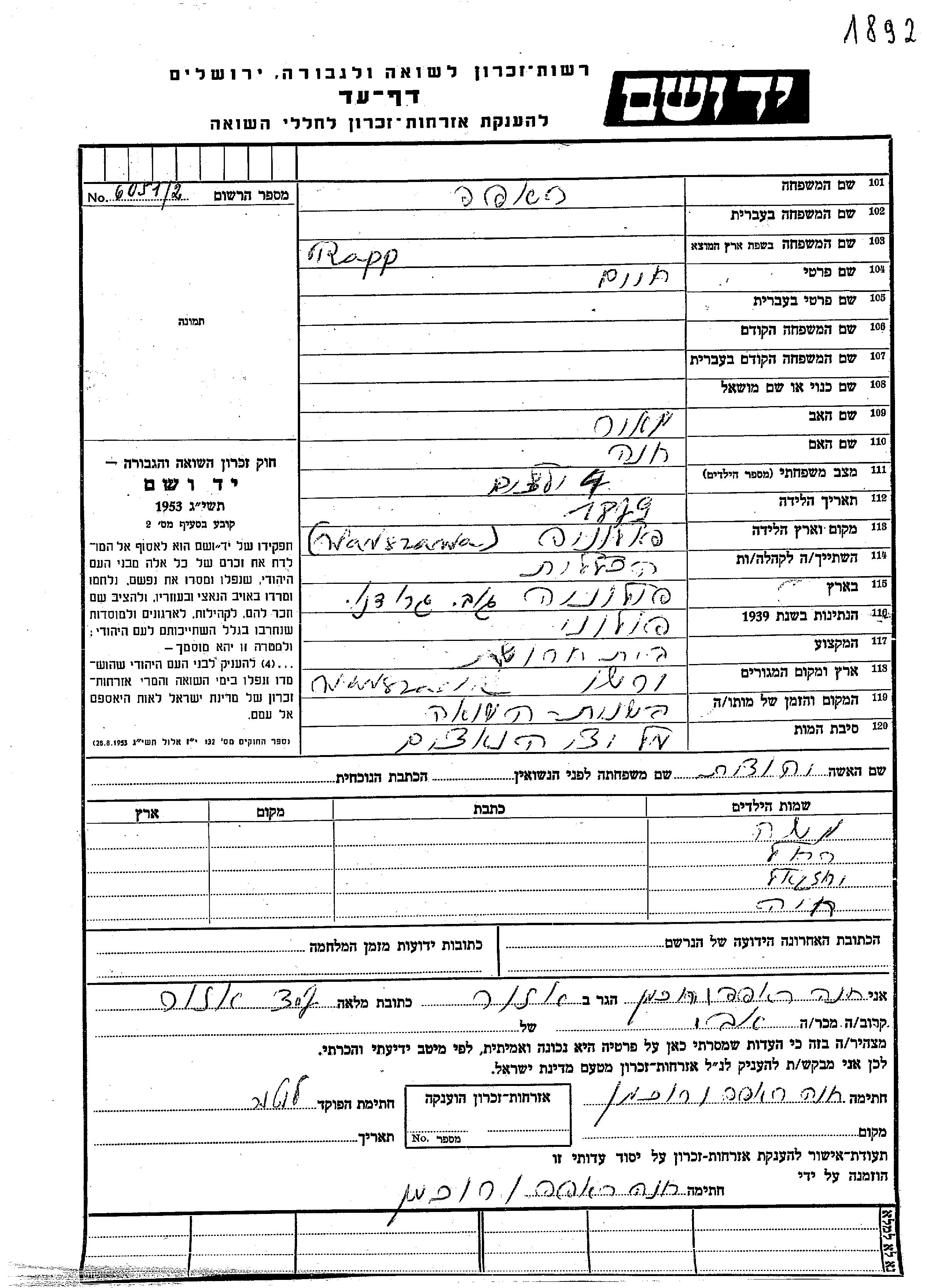 Поиск подателя Листа свидетельских показаний. Поиск по любому имени, включая уменьшительное или прозвище