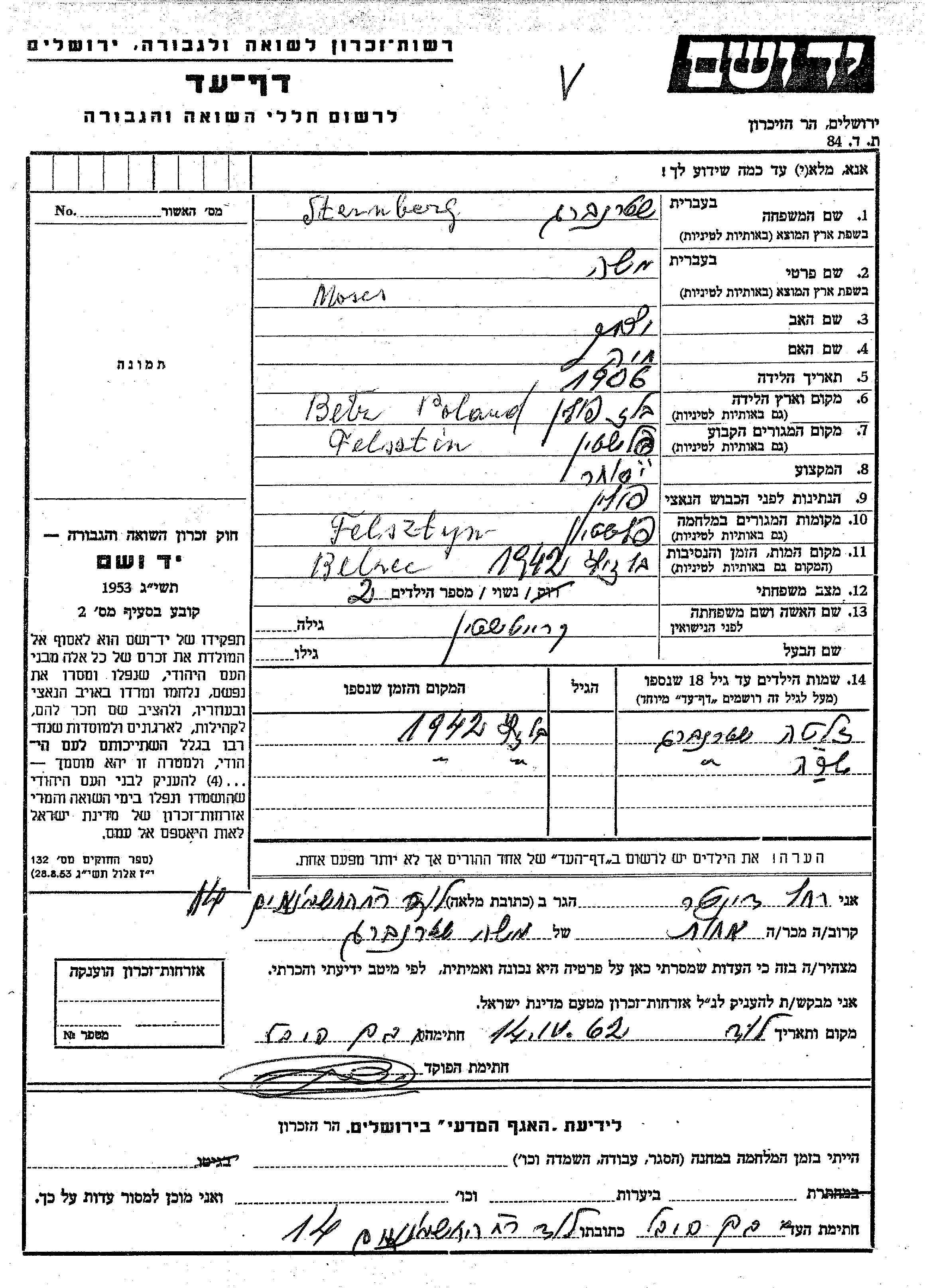 Штернберг Злата Фельштейн, Польша Лист свидетельских показаний
