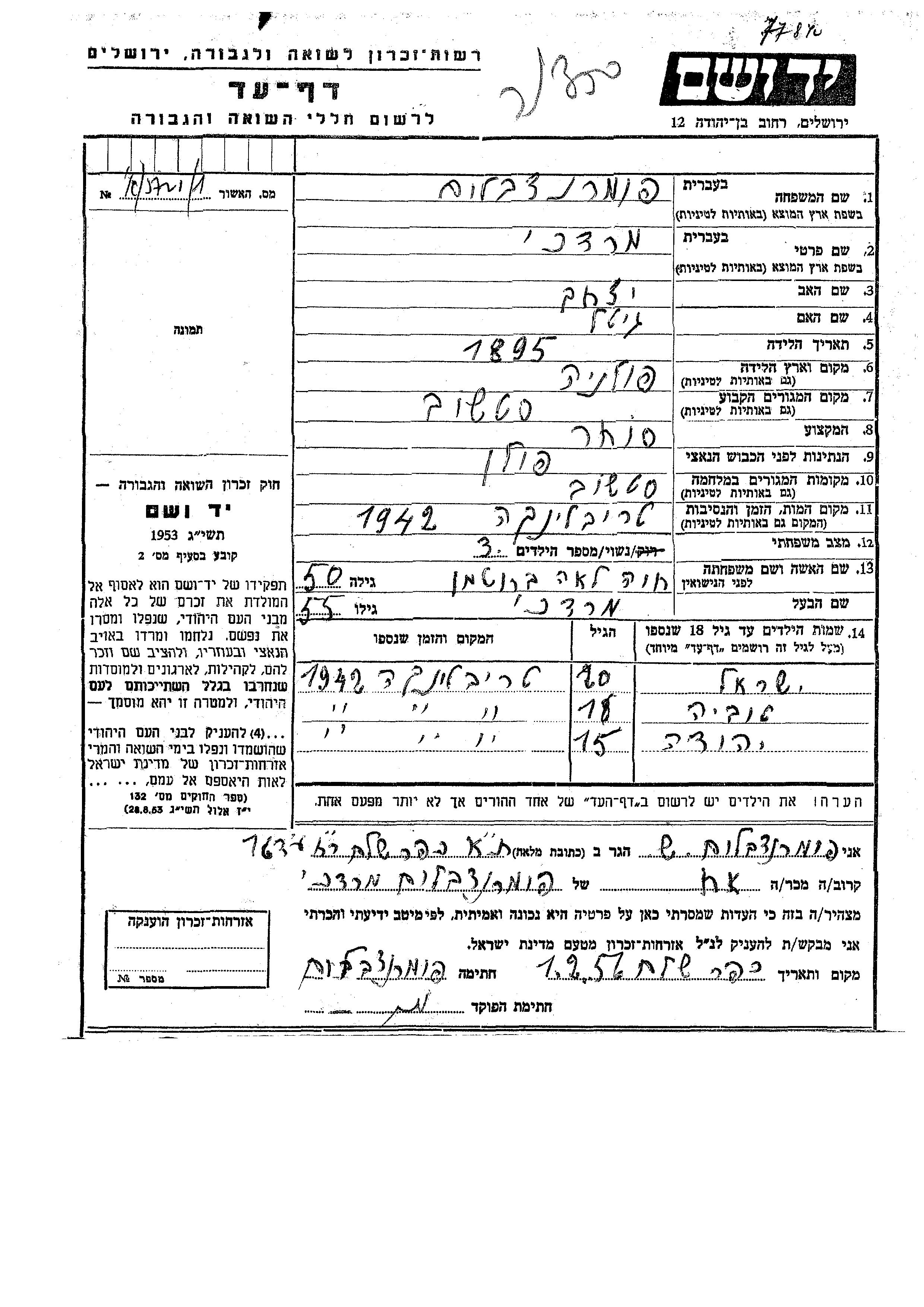 Яд Вашем - Листы свидетельских показаний Мемориального фонда