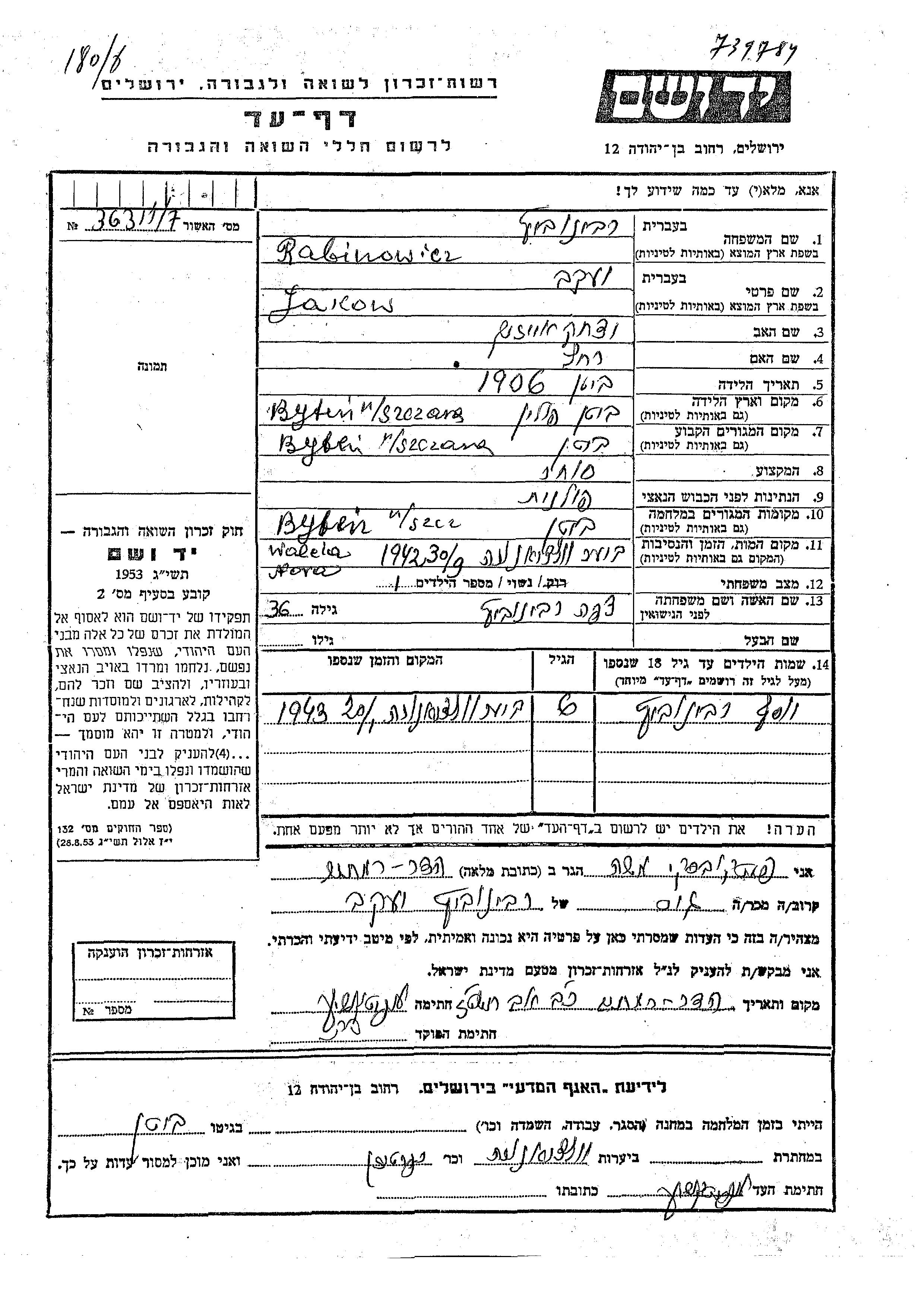 Рабинович Иосеф Byten nad Szczara, Польша Лист свидетельских показаний