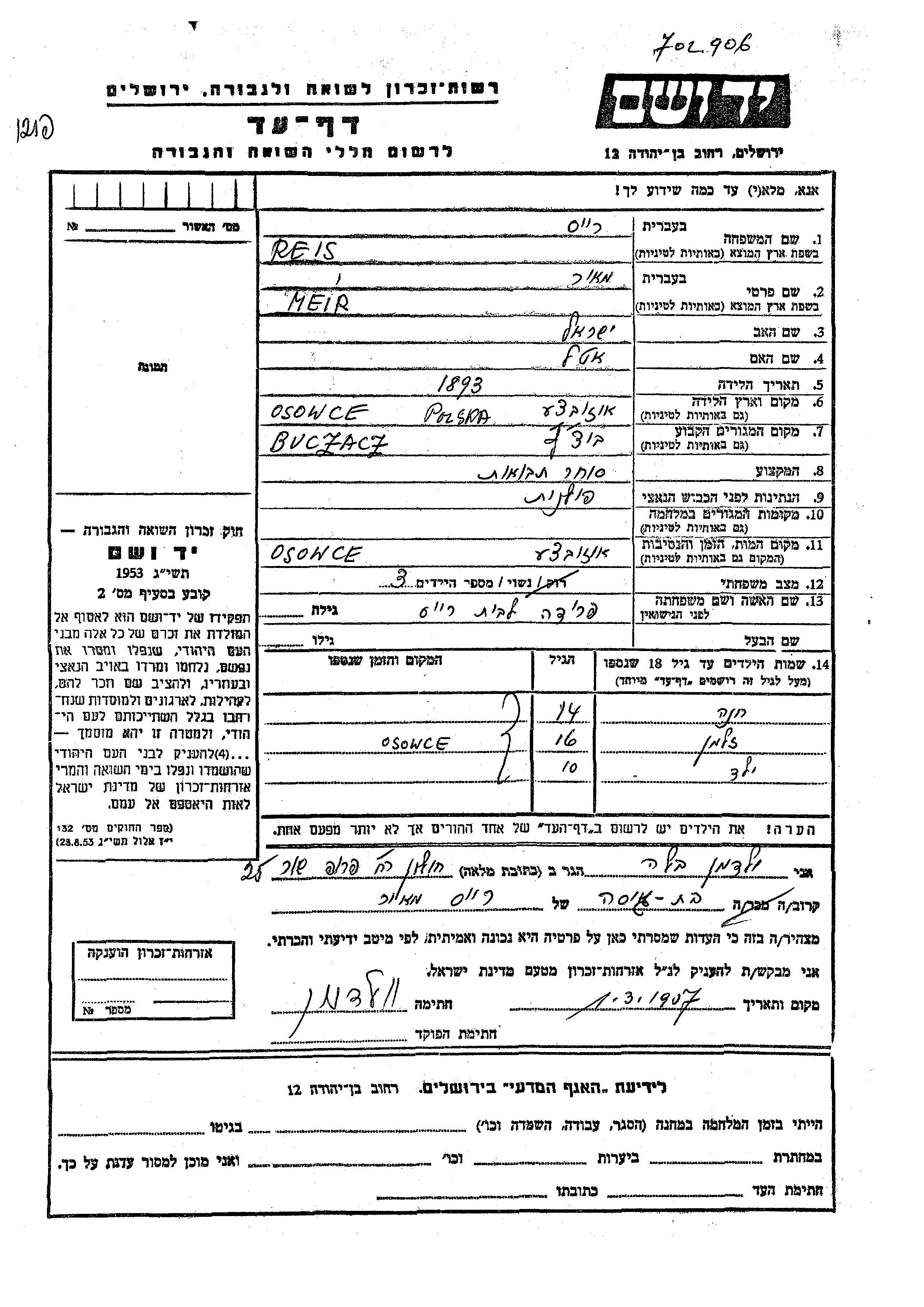 Рейс Имя неизвестно Бучач, Польша Лист свидетельских показаний