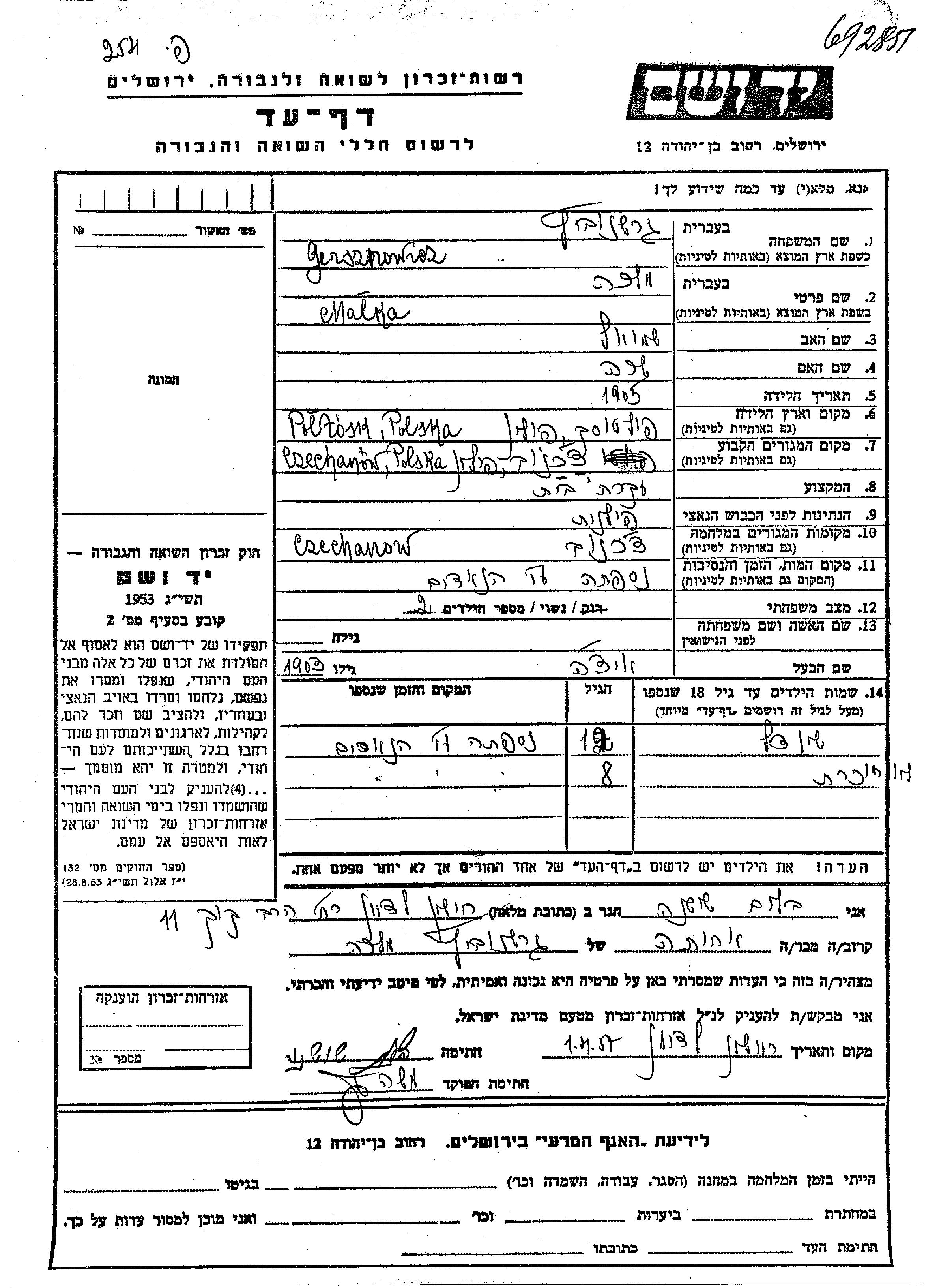Яд Вашем - Листы свидетельских показаний Мемориального фонда