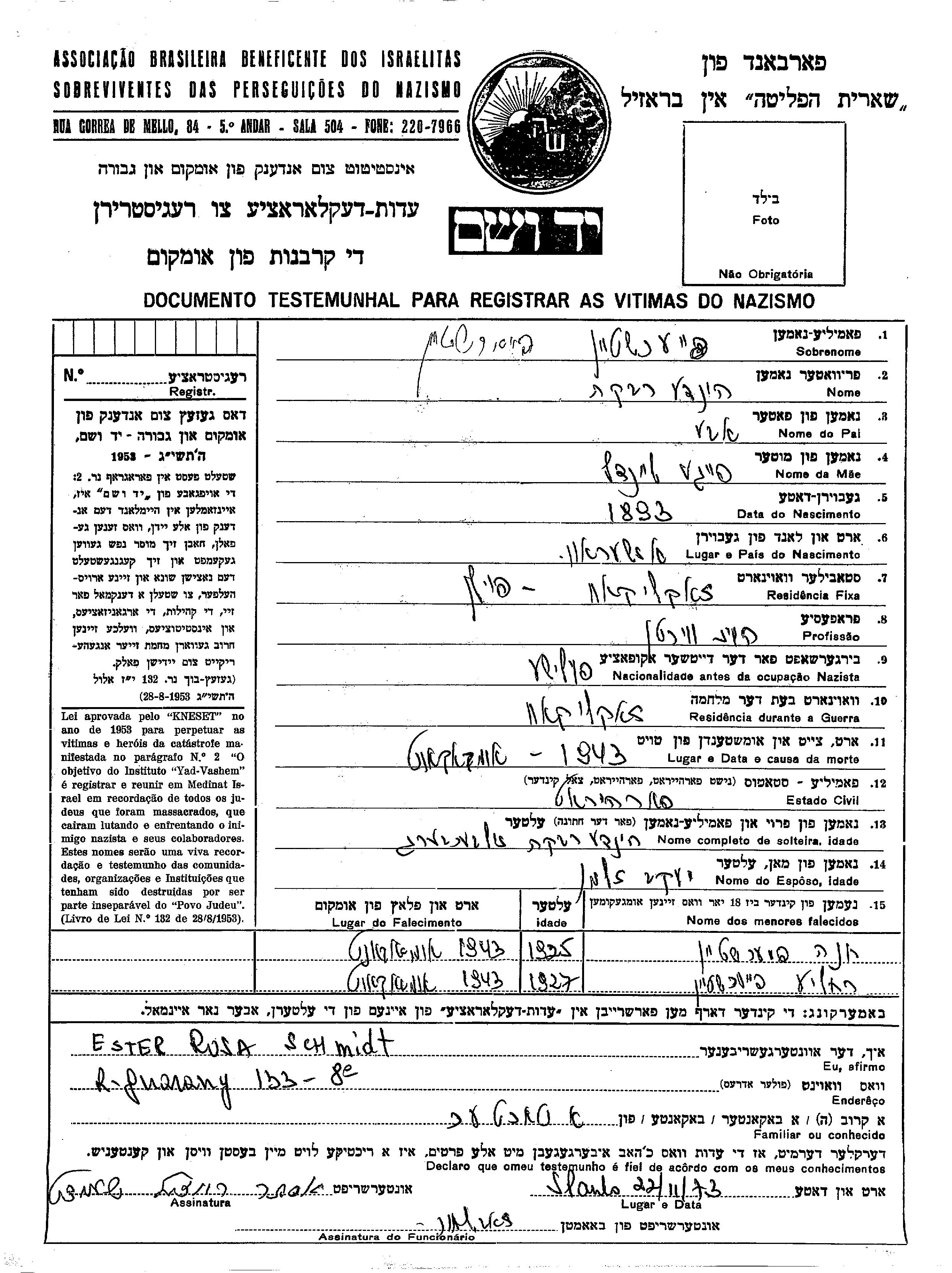 Файерштейн Хана 1925 место не указано, Лист свидетельских показаний