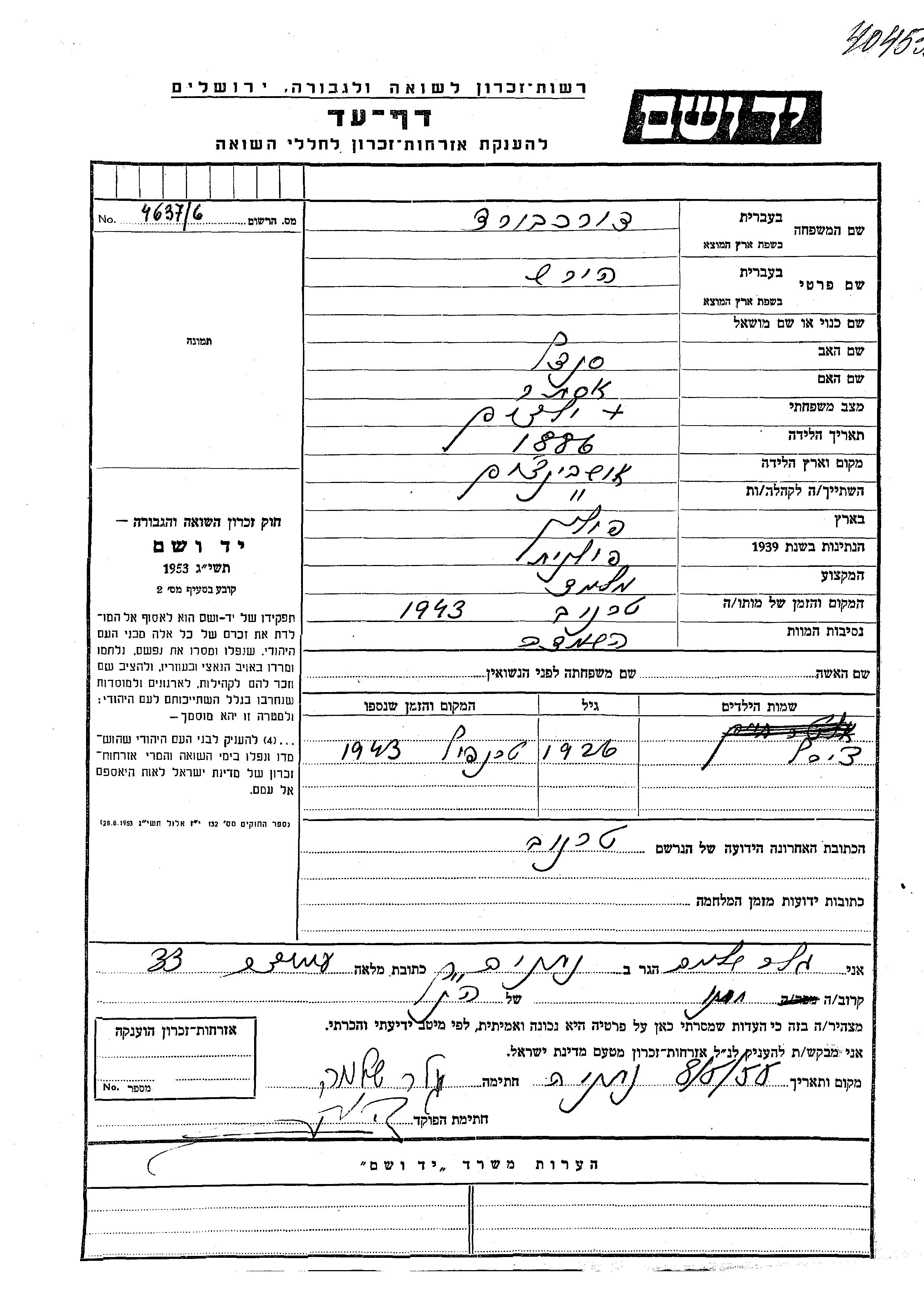 Яд Вашем - Листы свидетельских показаний Мемориального фонда