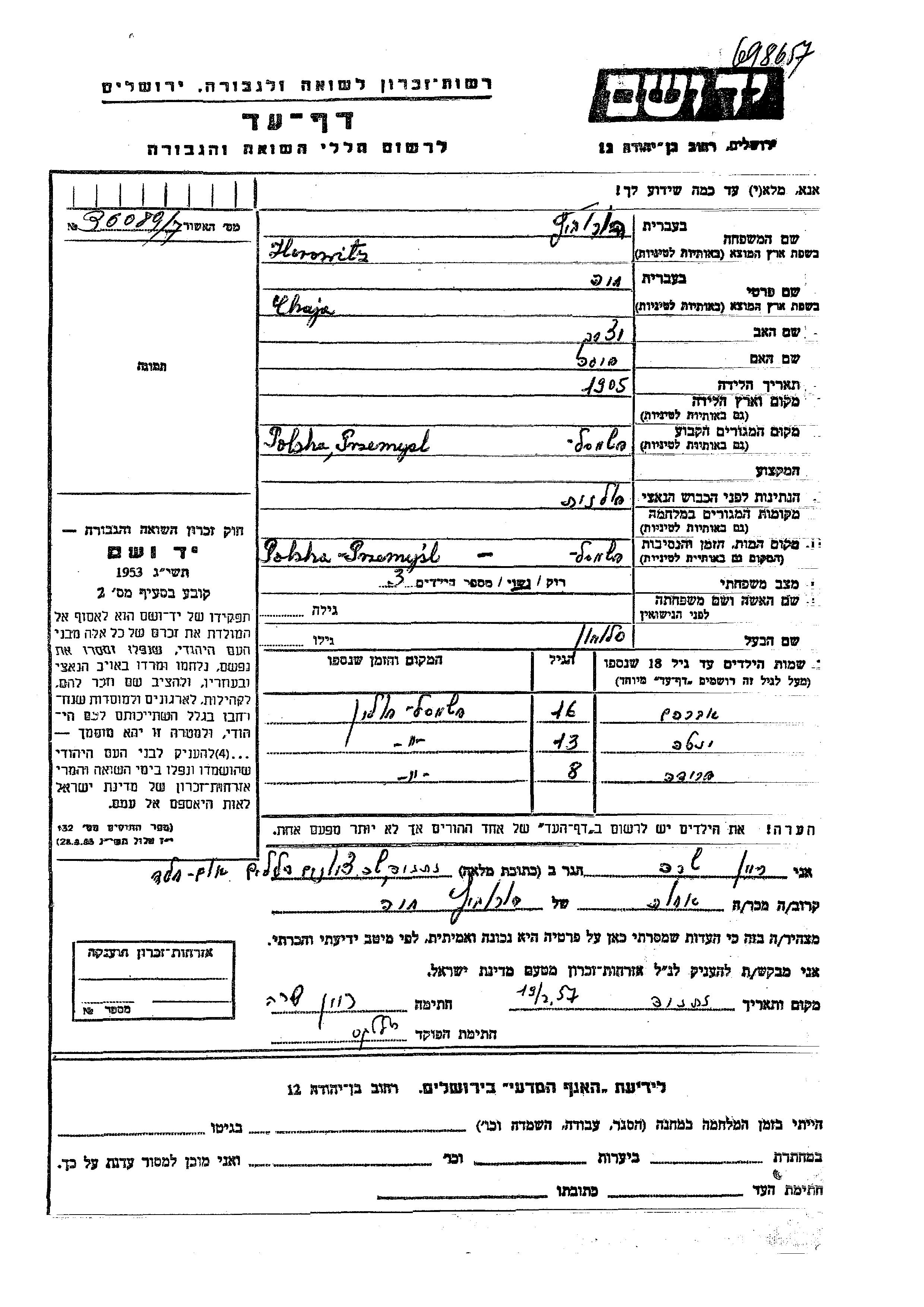 Яд Вашем - Листы свидетельских показаний Мемориального фонда