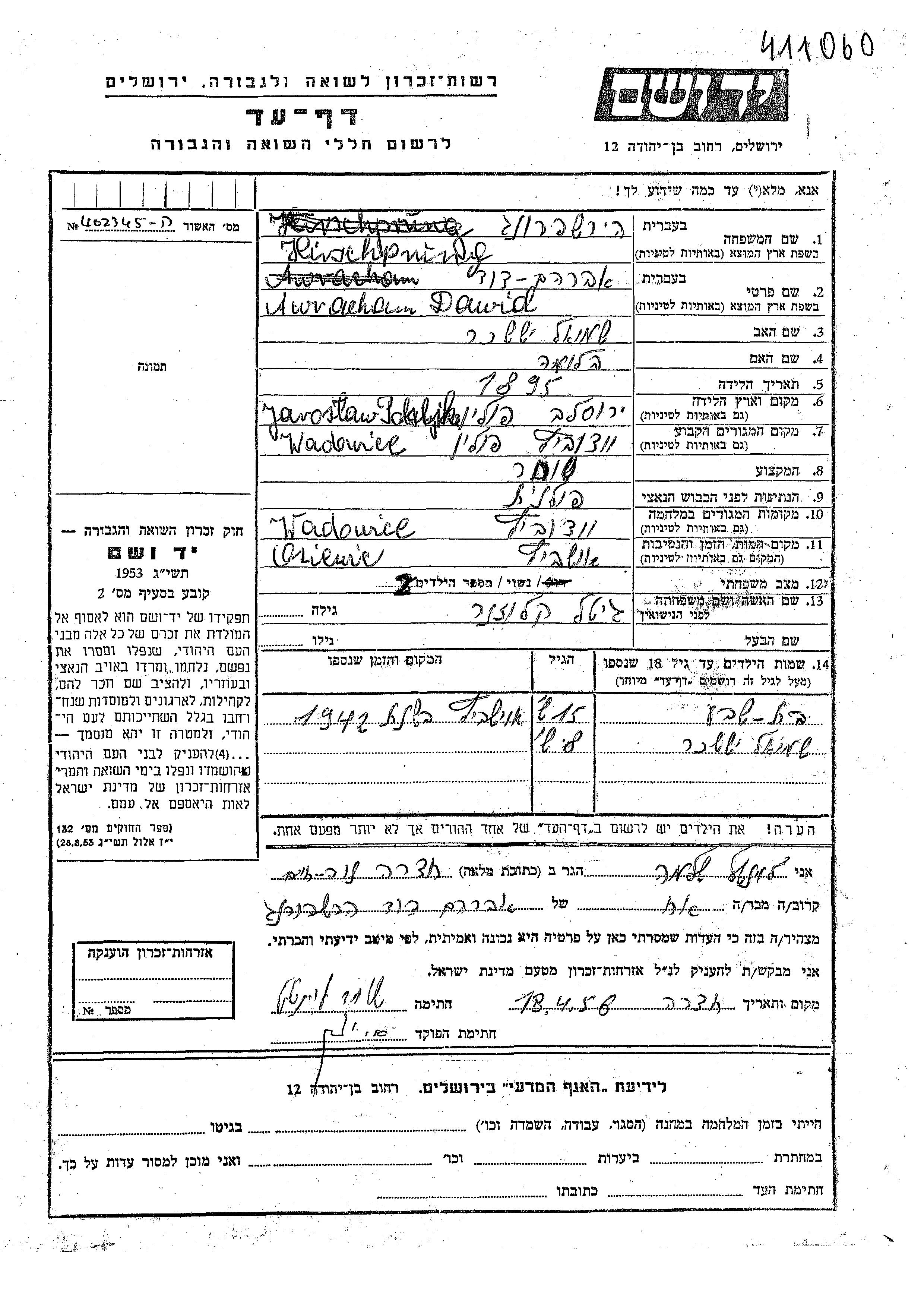 Поиск подателя Листа свидетельских показаний. Поиск по любому имени, включая уменьшительное или прозвище
