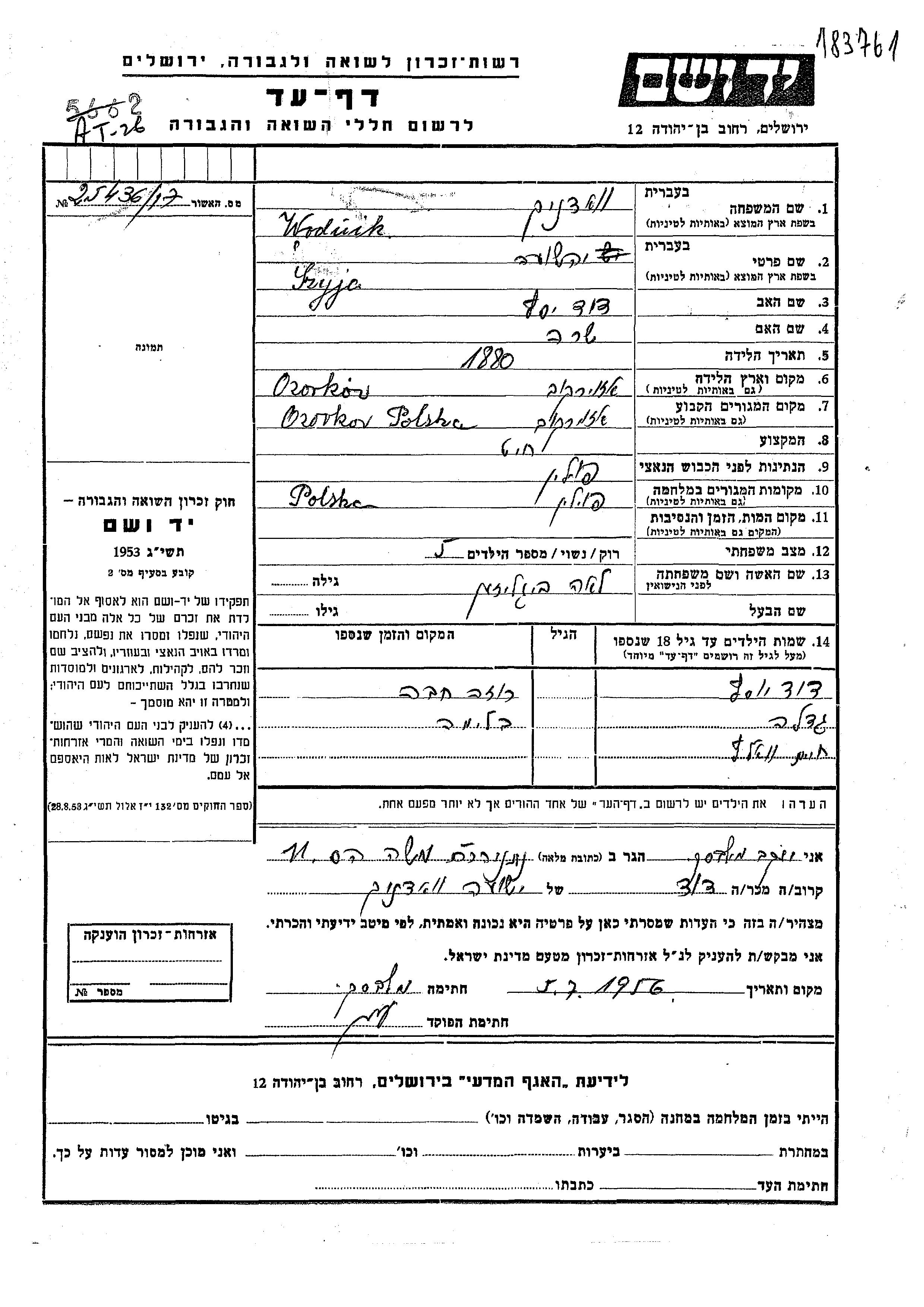 Яд Вашем - Листы свидетельских показаний Мемориального фонда
