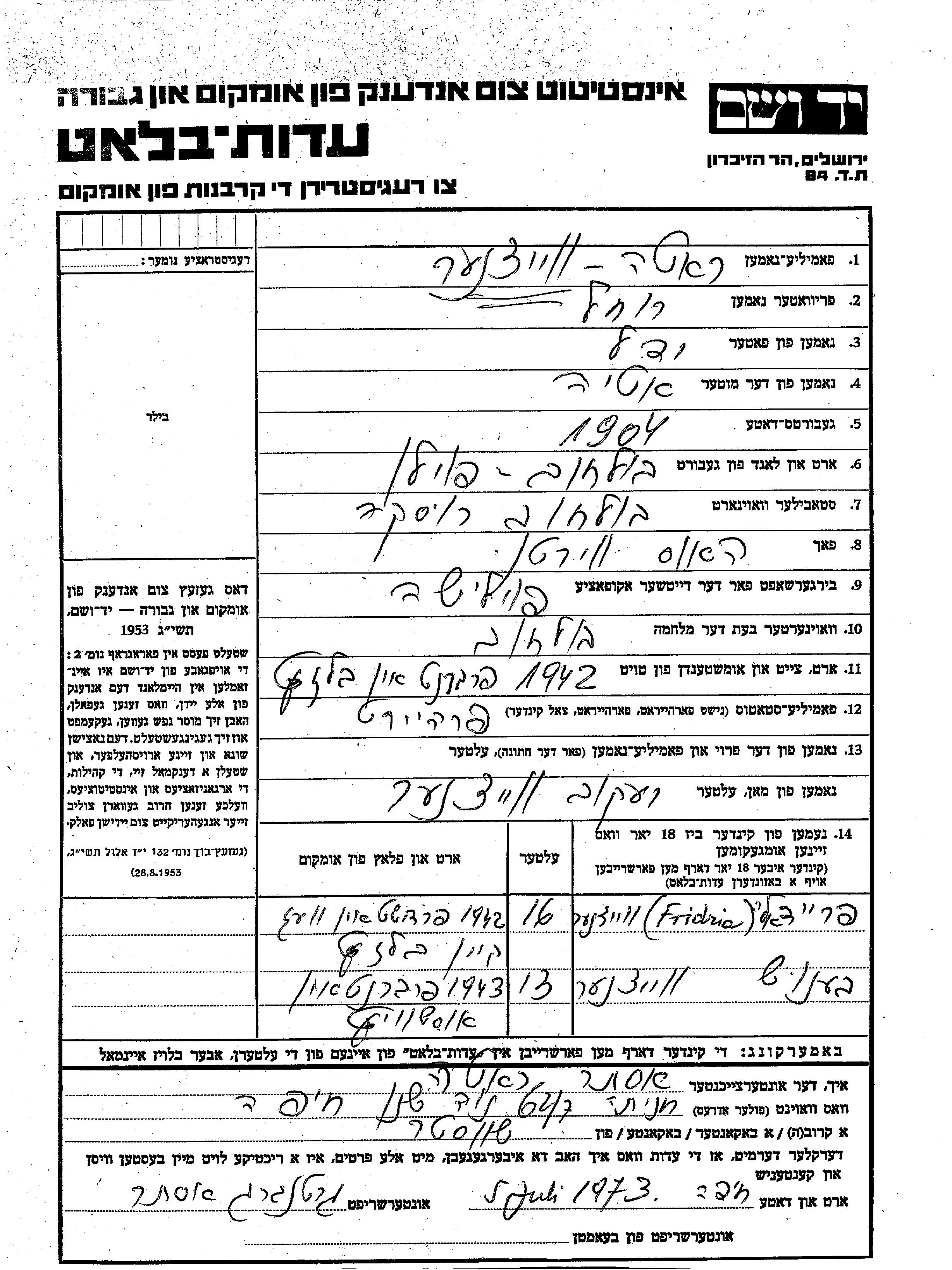 Яд Вашем - Листы свидетельских показаний Мемориального фонда