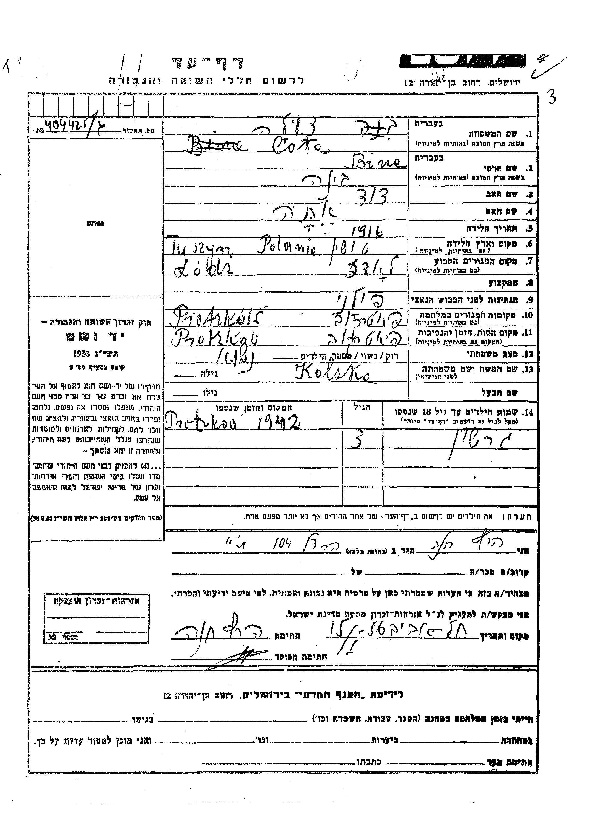 Цоле Гершон Лодзь, Польша Лист свидетельских показаний