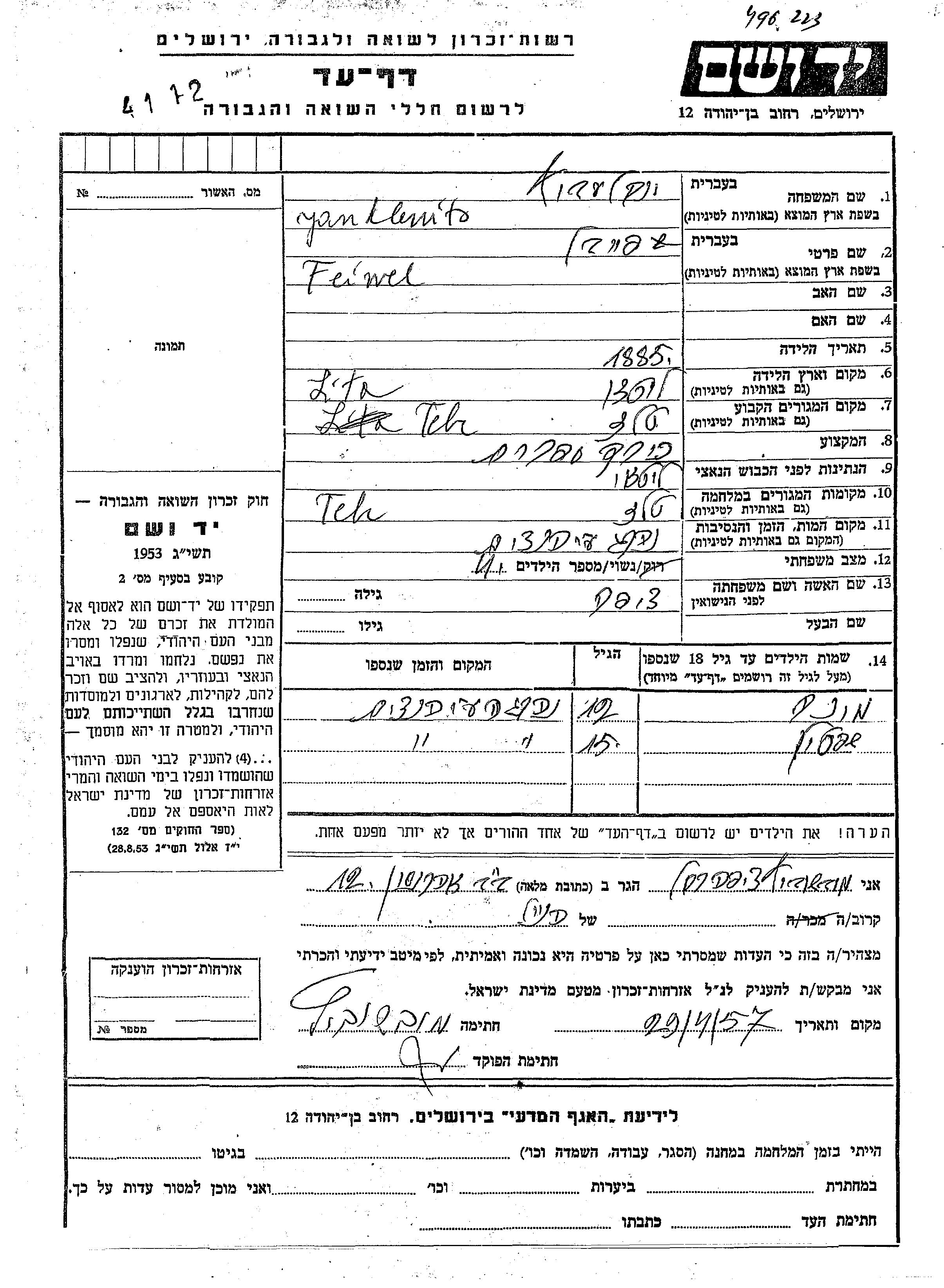 Яд Вашем - Листы свидетельских показаний Мемориального фонда