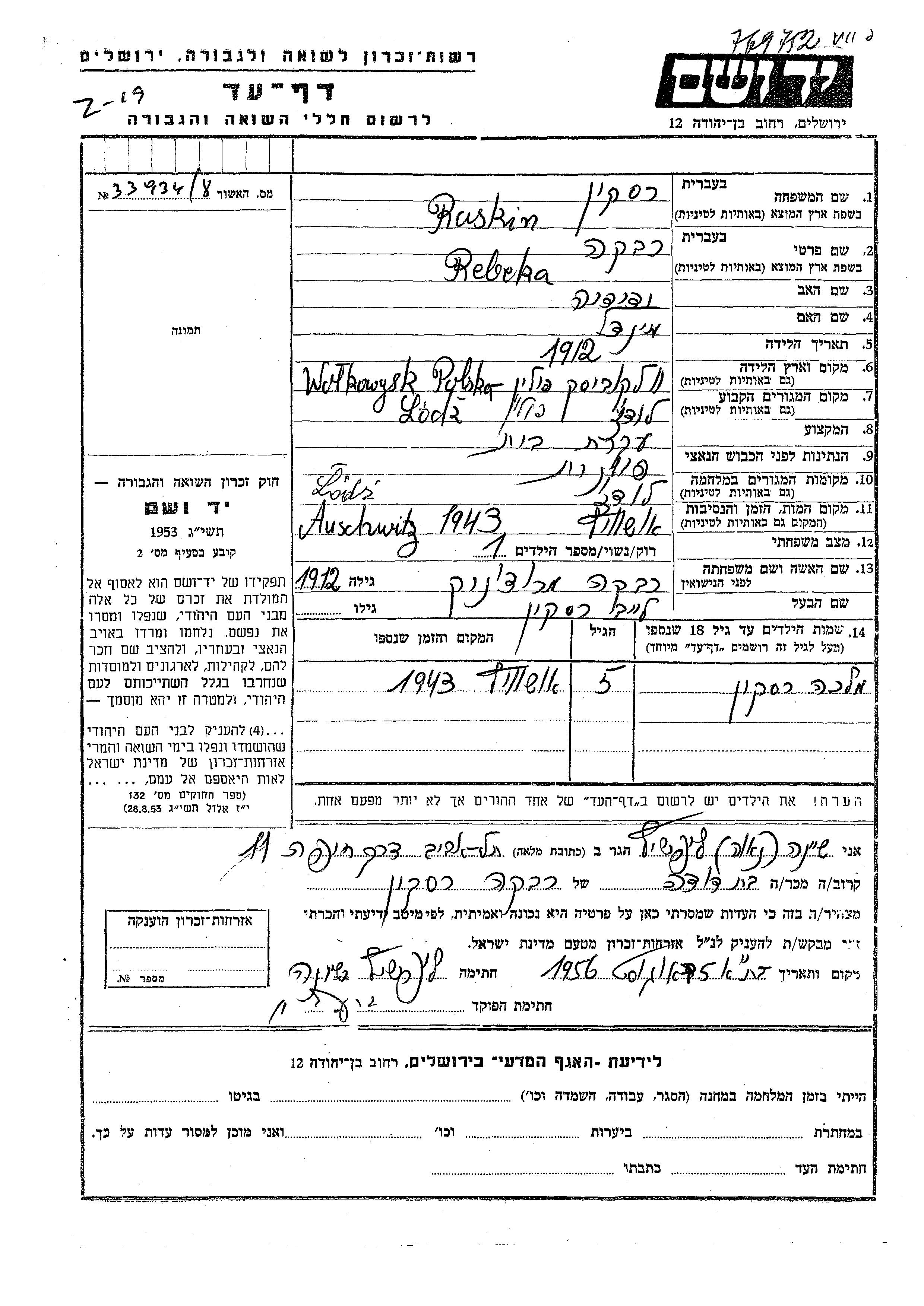 Яд Вашем - Листы свидетельских показаний Мемориального фонда