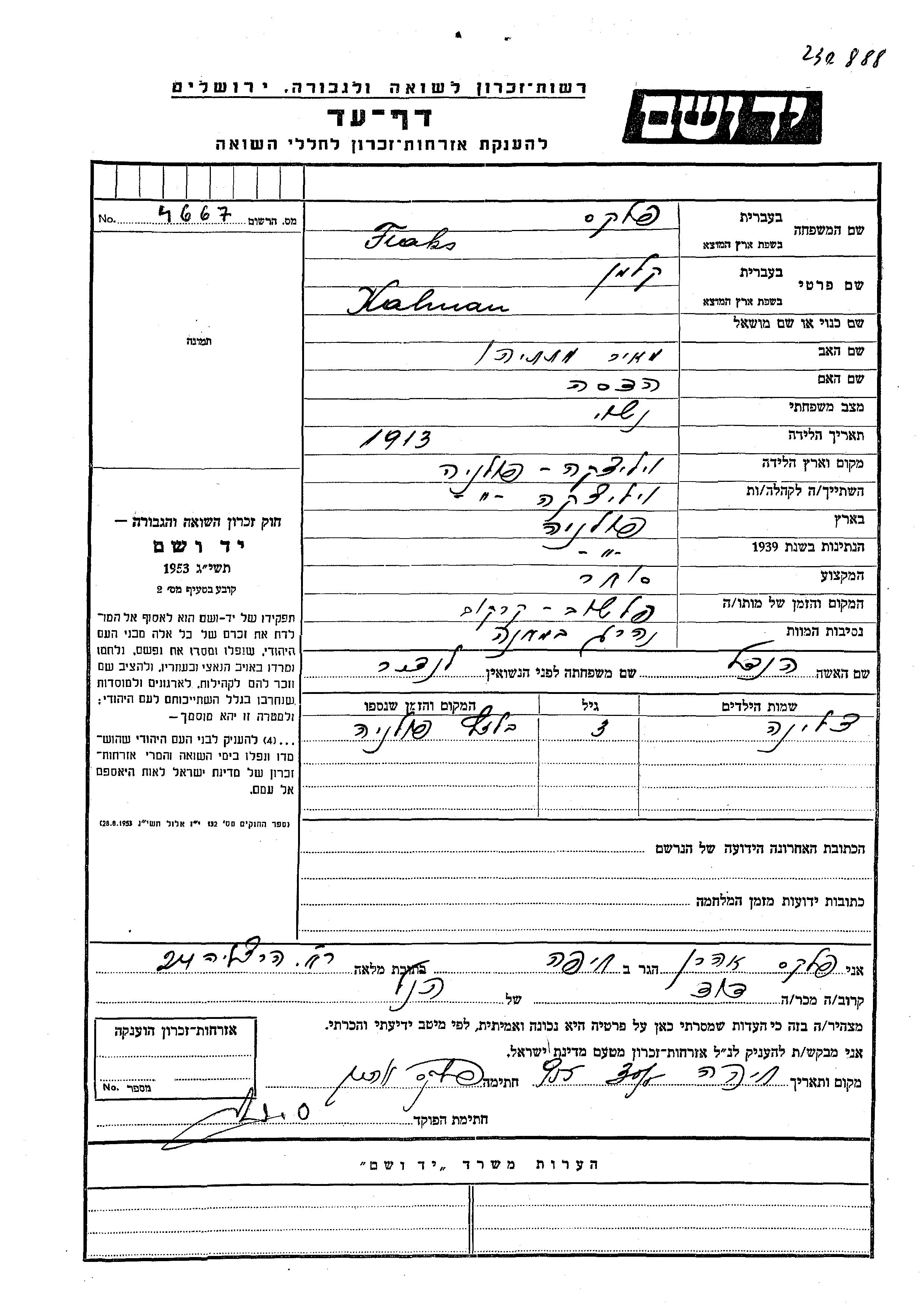Яд Вашем - Листы свидетельских показаний Мемориального фонда