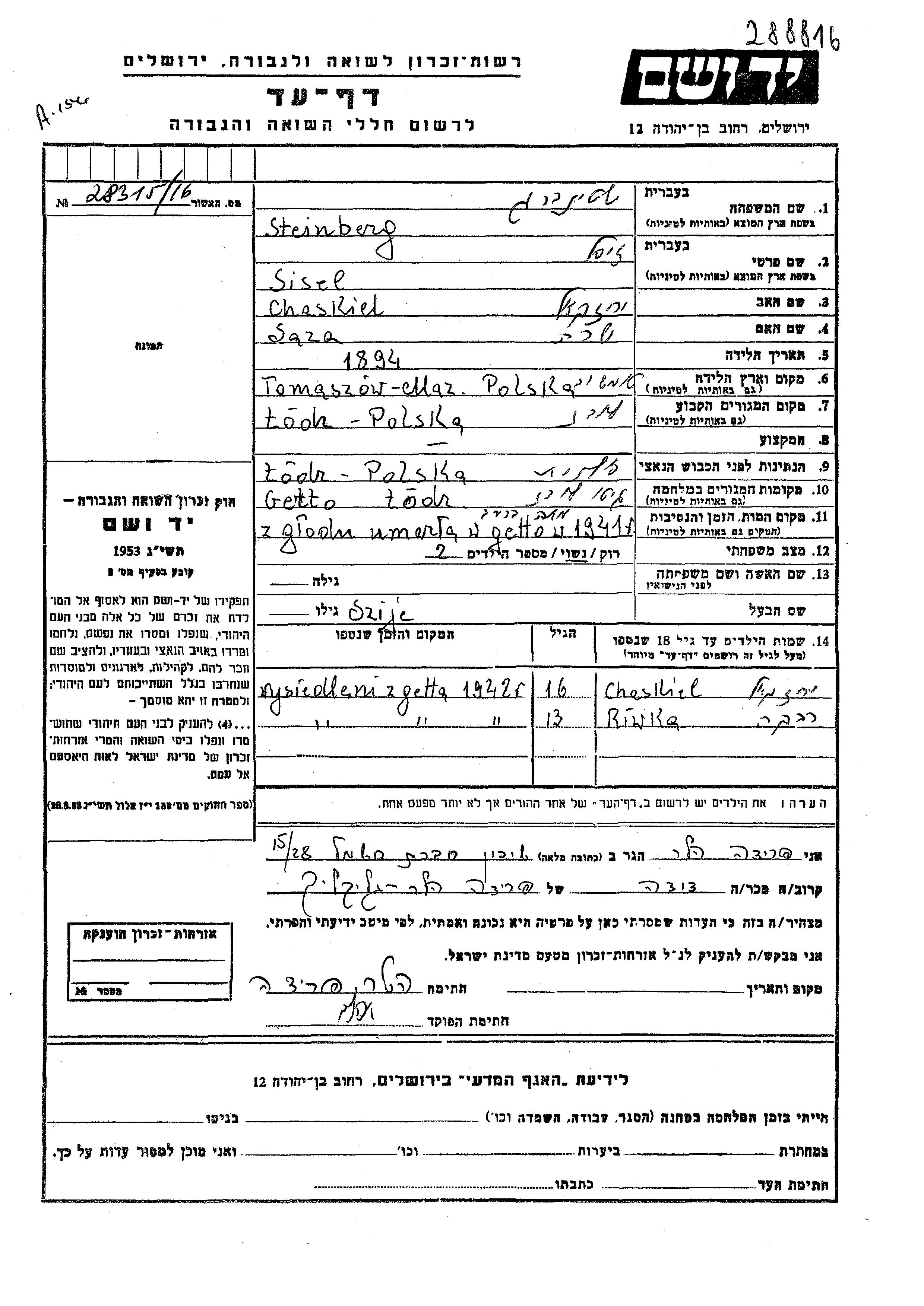 Яд Вашем - Листы свидетельских показаний Мемориального фонда