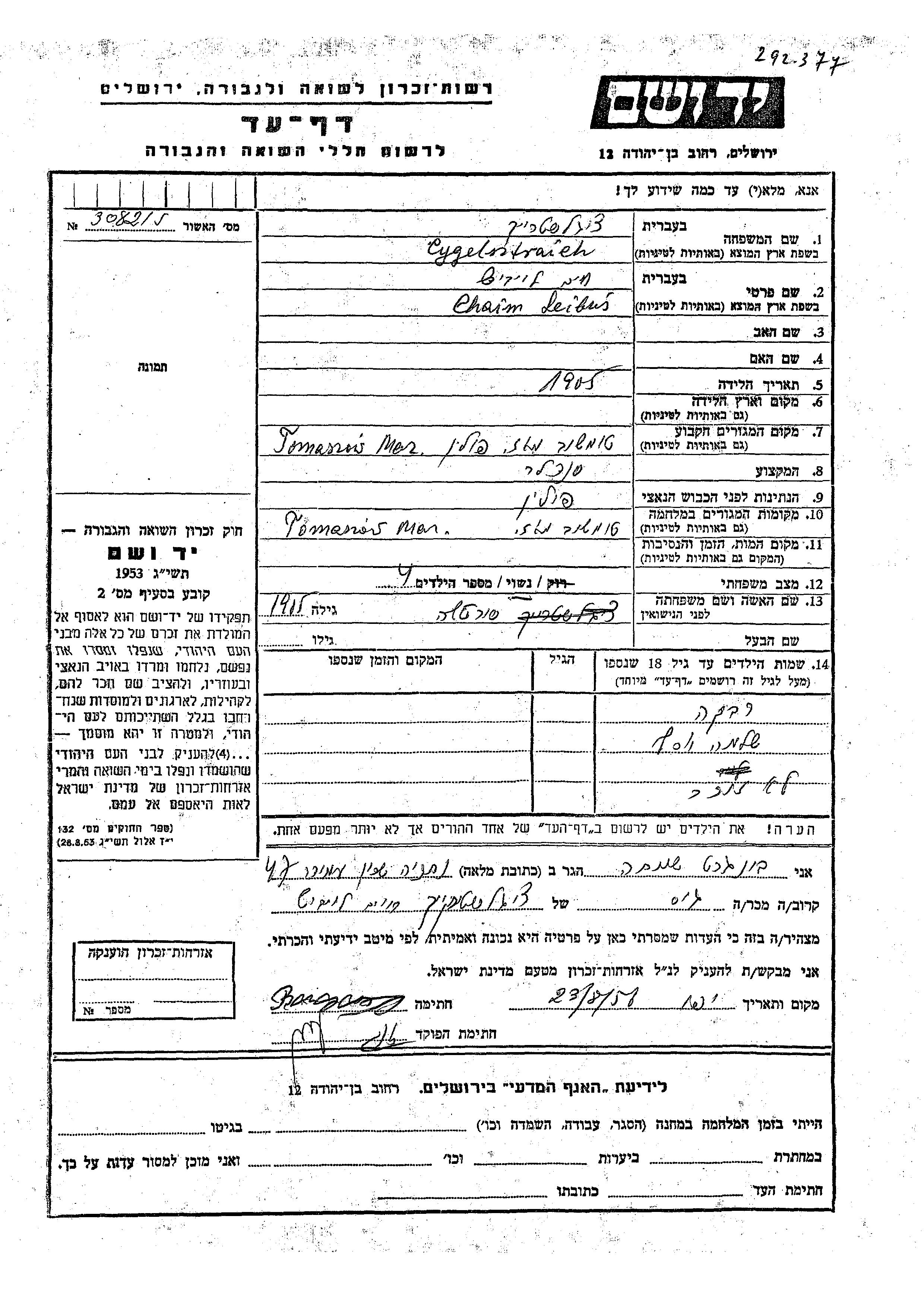Яд Вашем - Листы свидетельских показаний Мемориального фонда