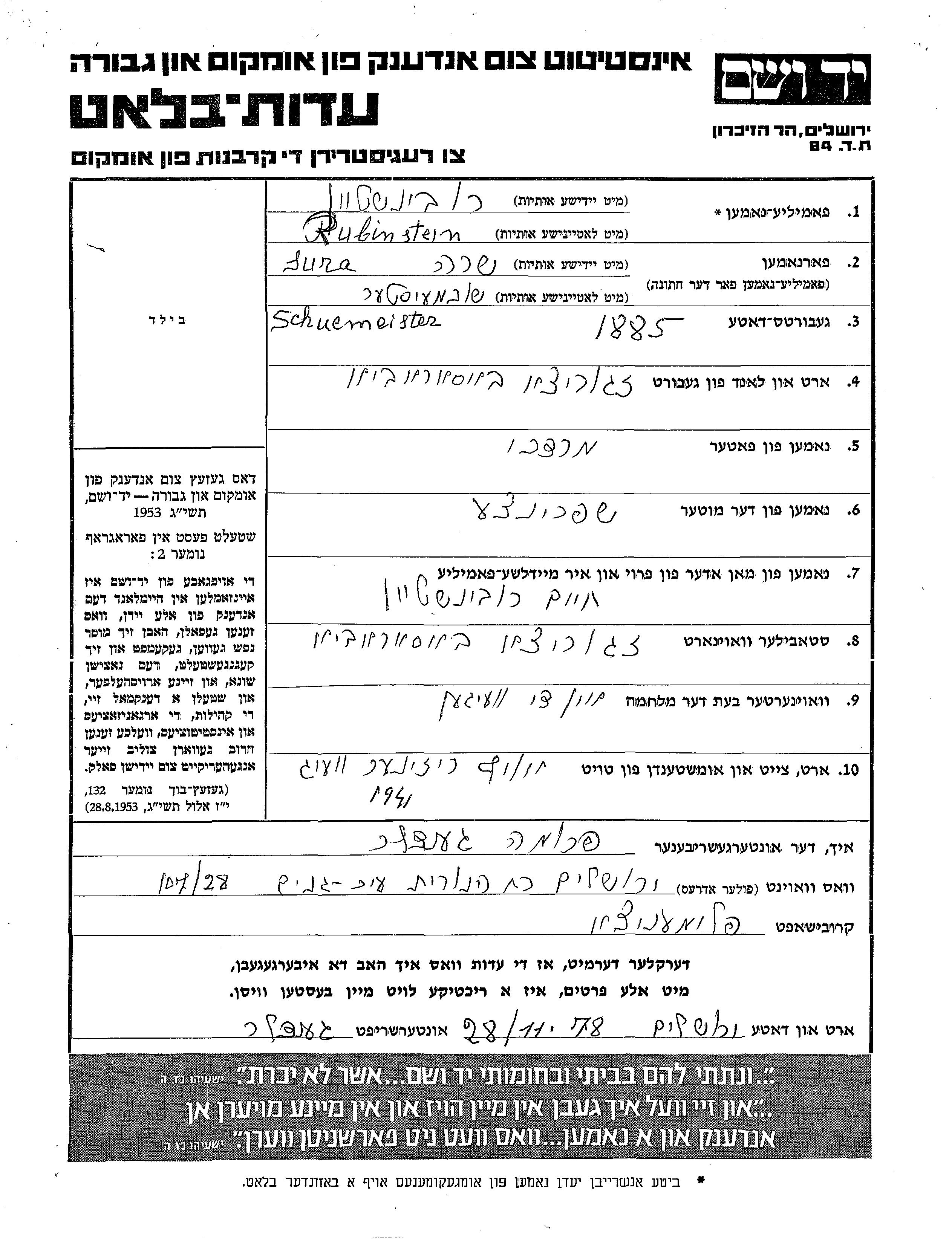 Во время Шоа евреев уничтожали разными способами: газовые камеры, расстрелы, их заживо хоронили или сжигали, непосильным принудительным трудом, голодом, эпидемиями, отсутствием минимальных гигиенических условий и медицинского обслуживания, и т.д. Некоторые евреи добровольно расстались со своей жизнью, чтобы избежать ареста и дальнейших преследований или чтобы покончить с безысходностью и бесконечными страданиями. Десятки тысяч еврейских солдат, служивших в Советской армии и попавших в плен, , были отобраны как евреи и убиты. Многие были зарегистрированы как «пропавшие без вести».