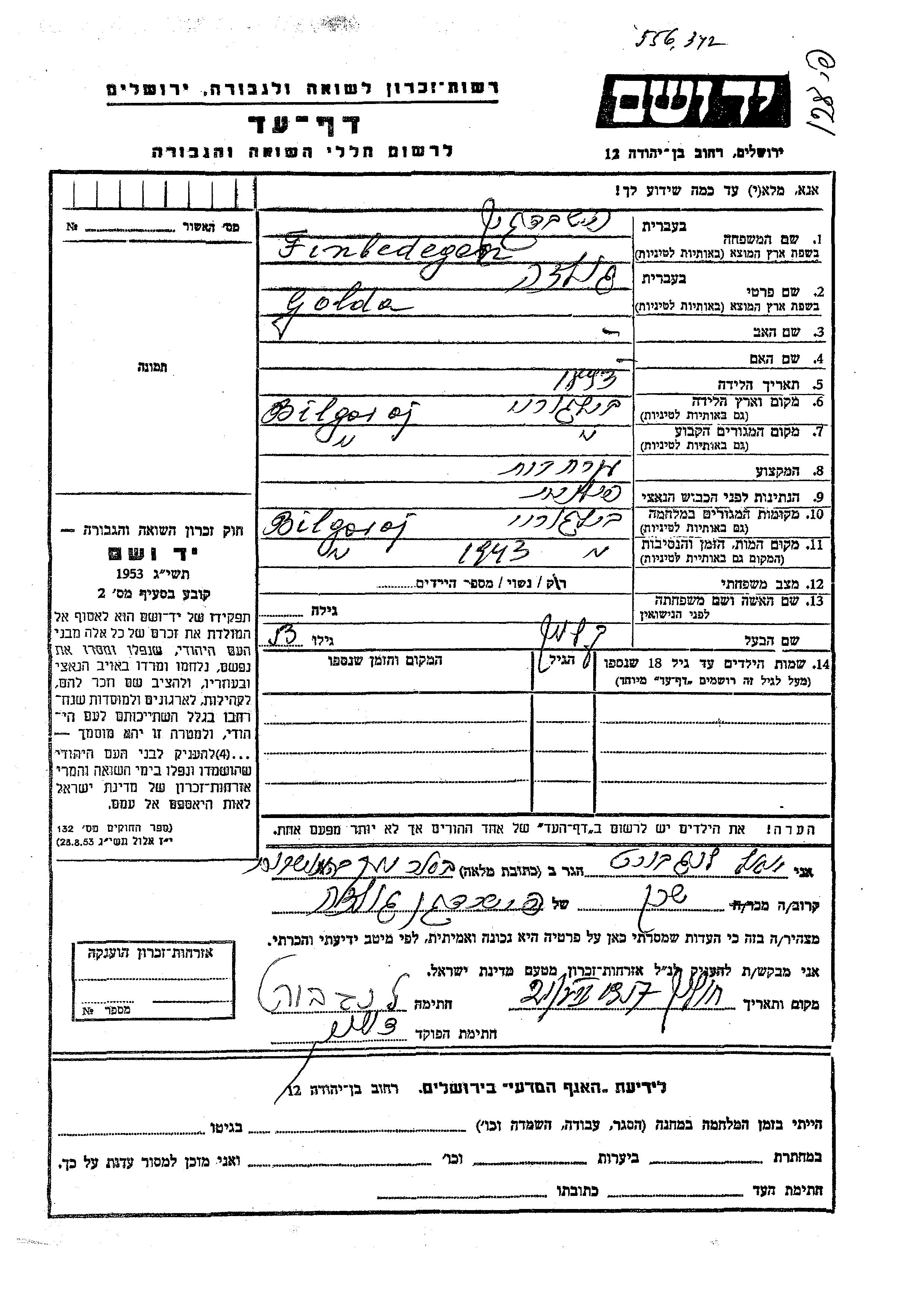 Голда уничтоженa в период Шоа. место смерти: неизвестно в 1943.