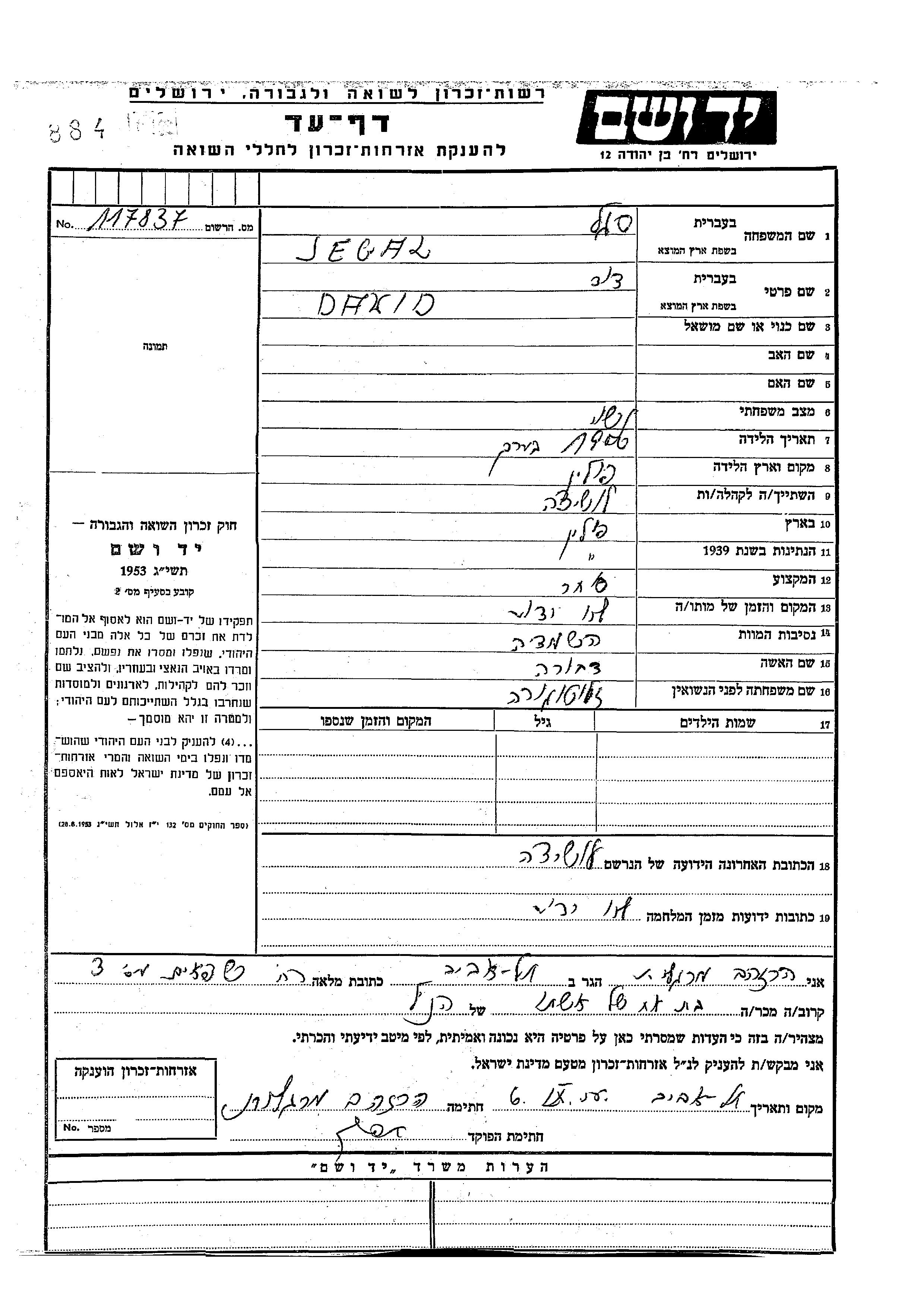 Яд Вашем - Листы свидетельских показаний Мемориального фонда