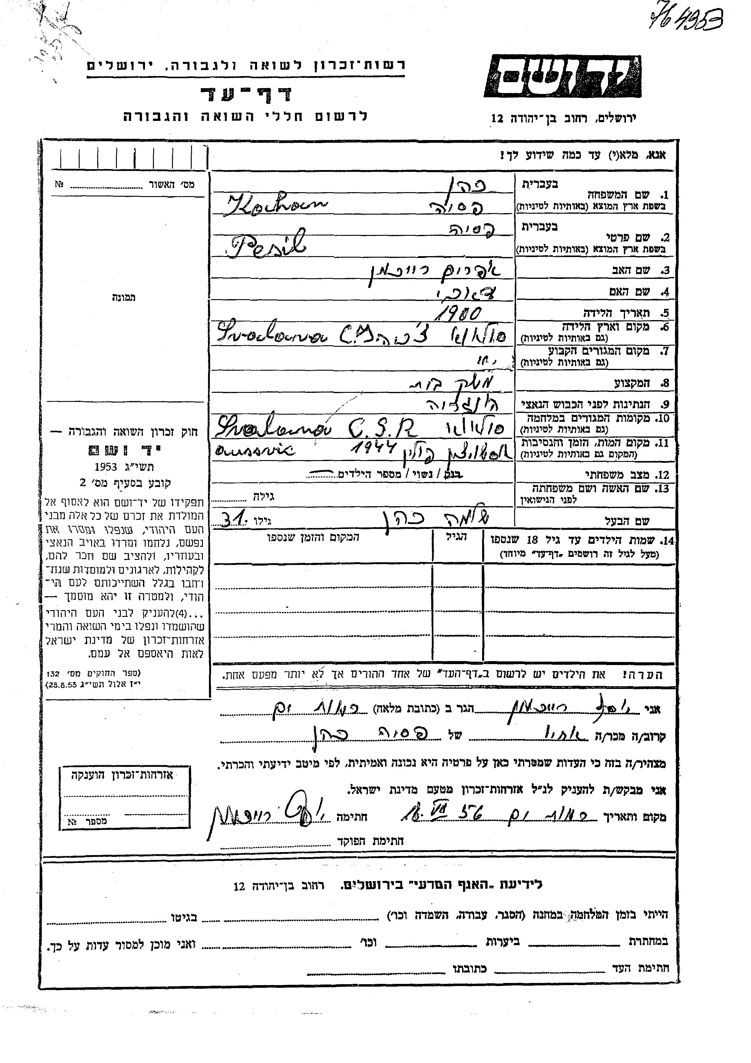 Яд Вашем - Листы свидетельских показаний Мемориального фонда