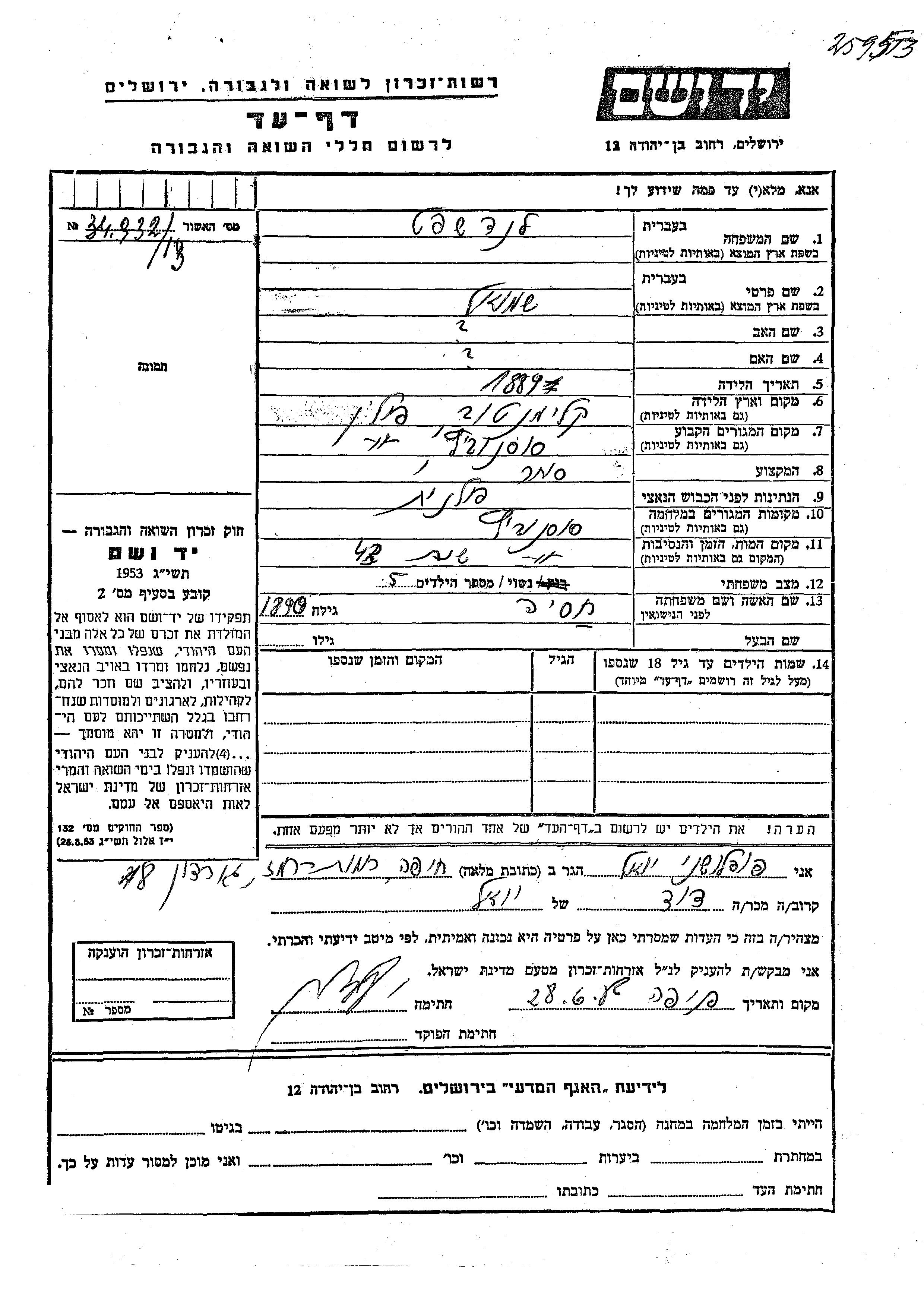 Яд Вашем - Листы свидетельских показаний Мемориального фонда