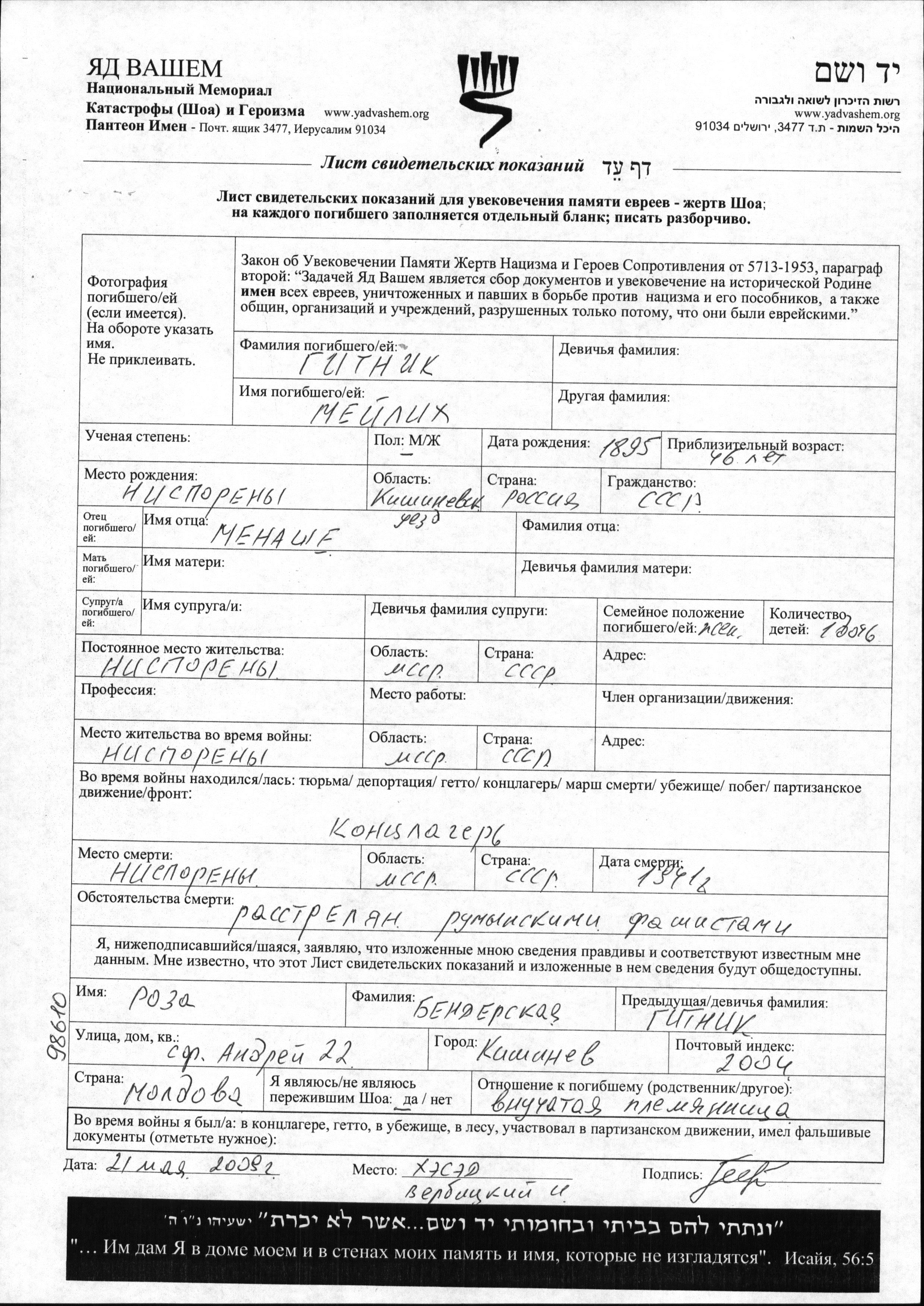 Поиск подателя Листа свидетельских показаний. Поиск по любому имени, включая уменьшительное или прозвище