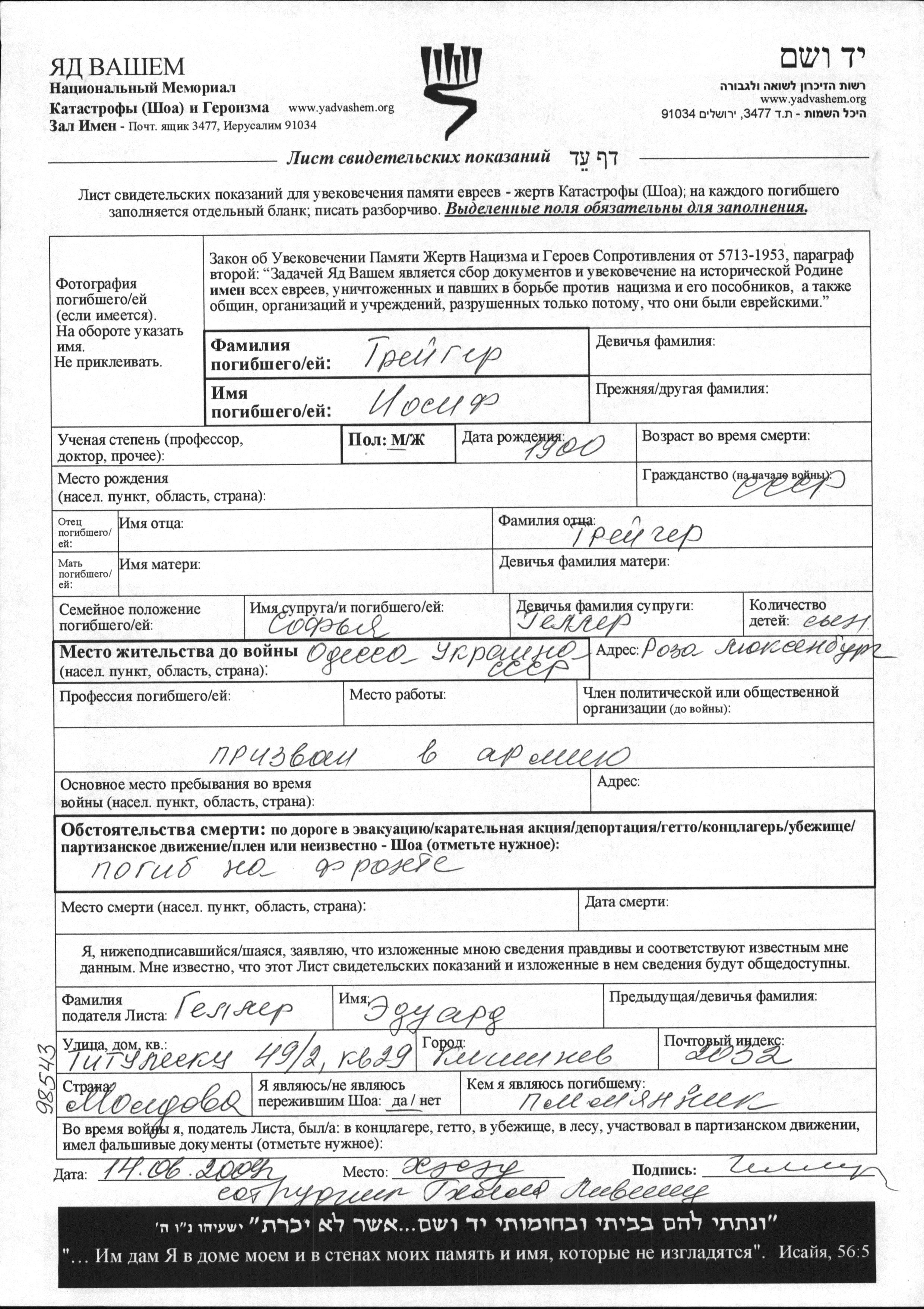 Поиск подателя Листа свидетельских показаний. Поиск по любому имени, включая уменьшительное или прозвище