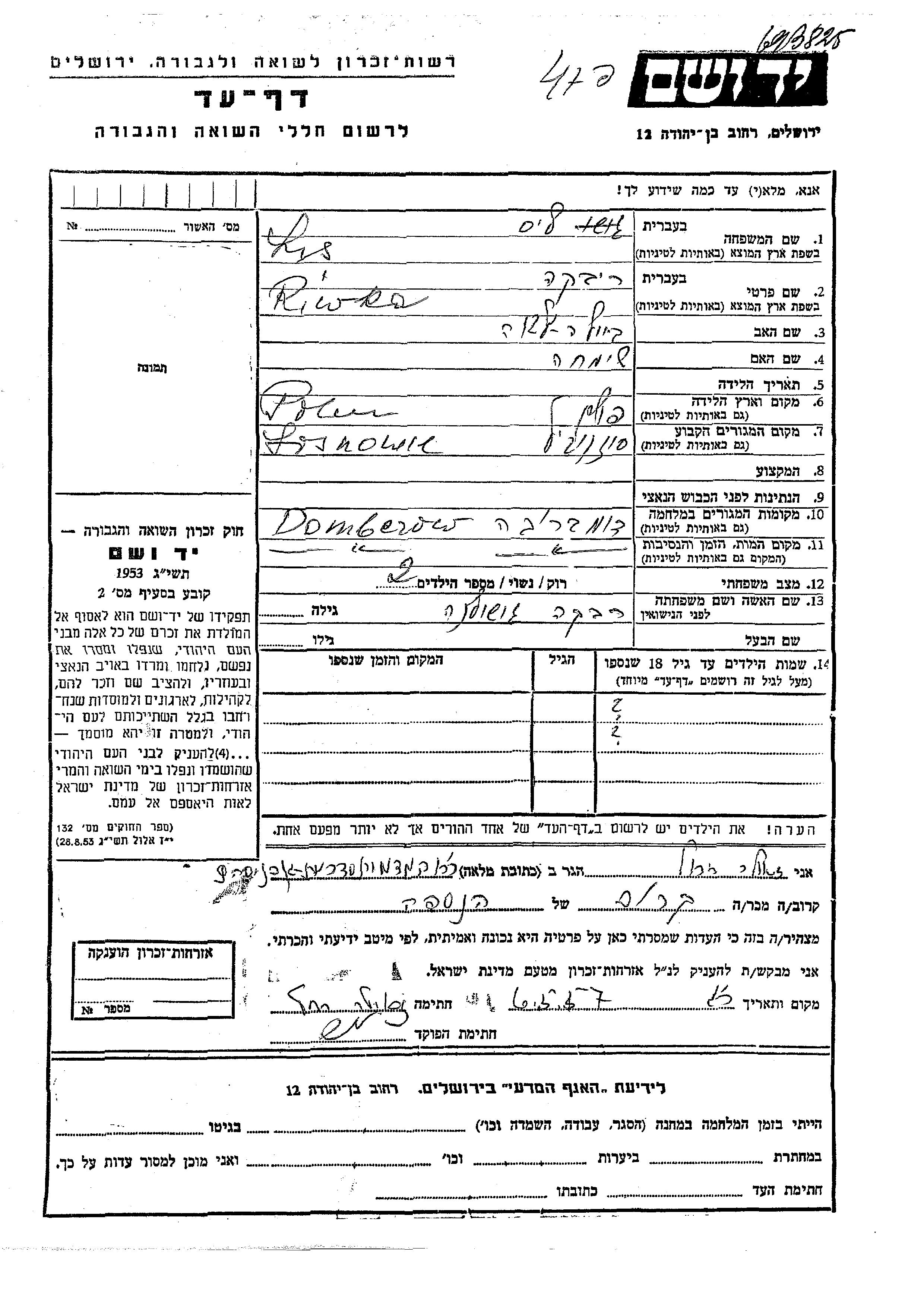 Яд Вашем - Листы свидетельских показаний Мемориального фонда