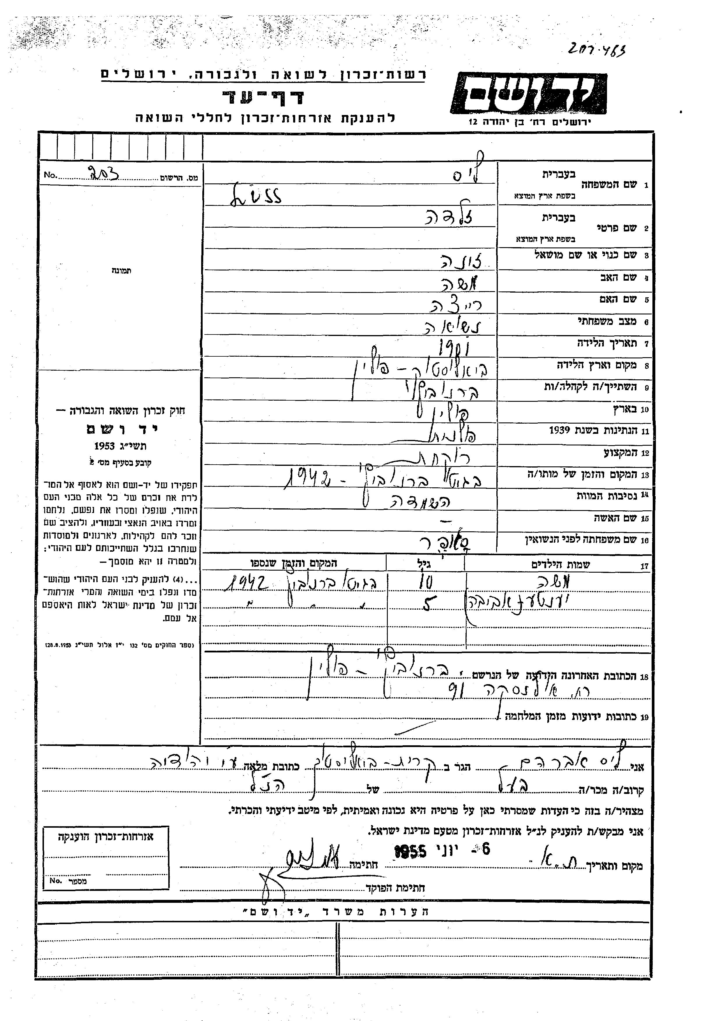 Яд Вашем - Листы свидетельских показаний Мемориального фонда