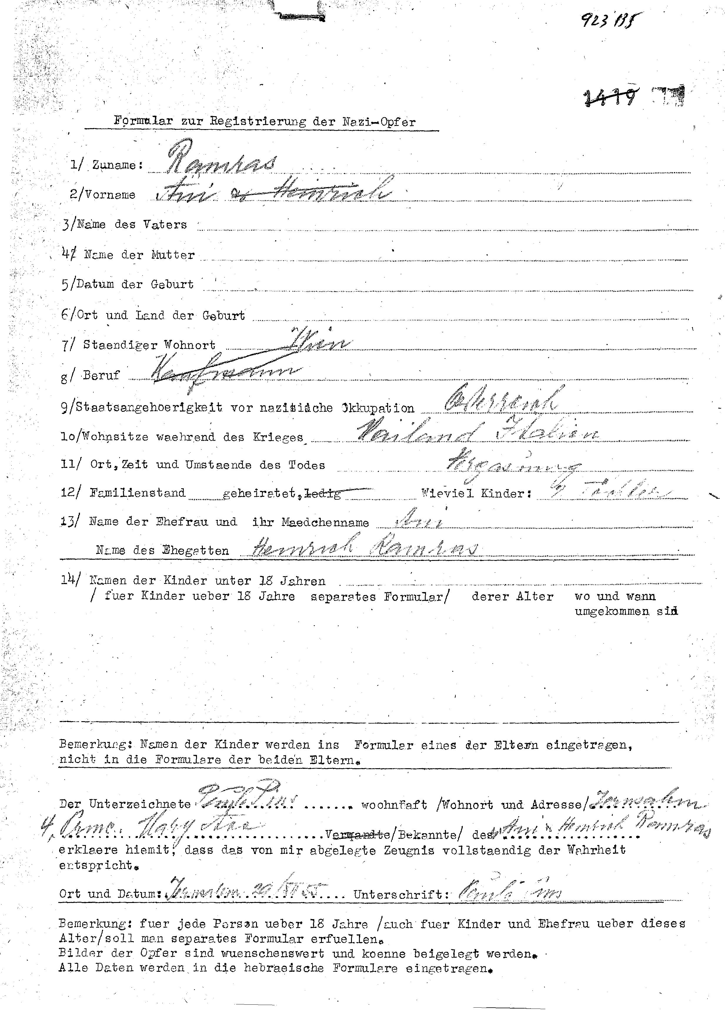 Ани Рамрас. Женат / замужем. Место жительства до войны: Вена, Австрия. Место во время войны: Милан, Италия.