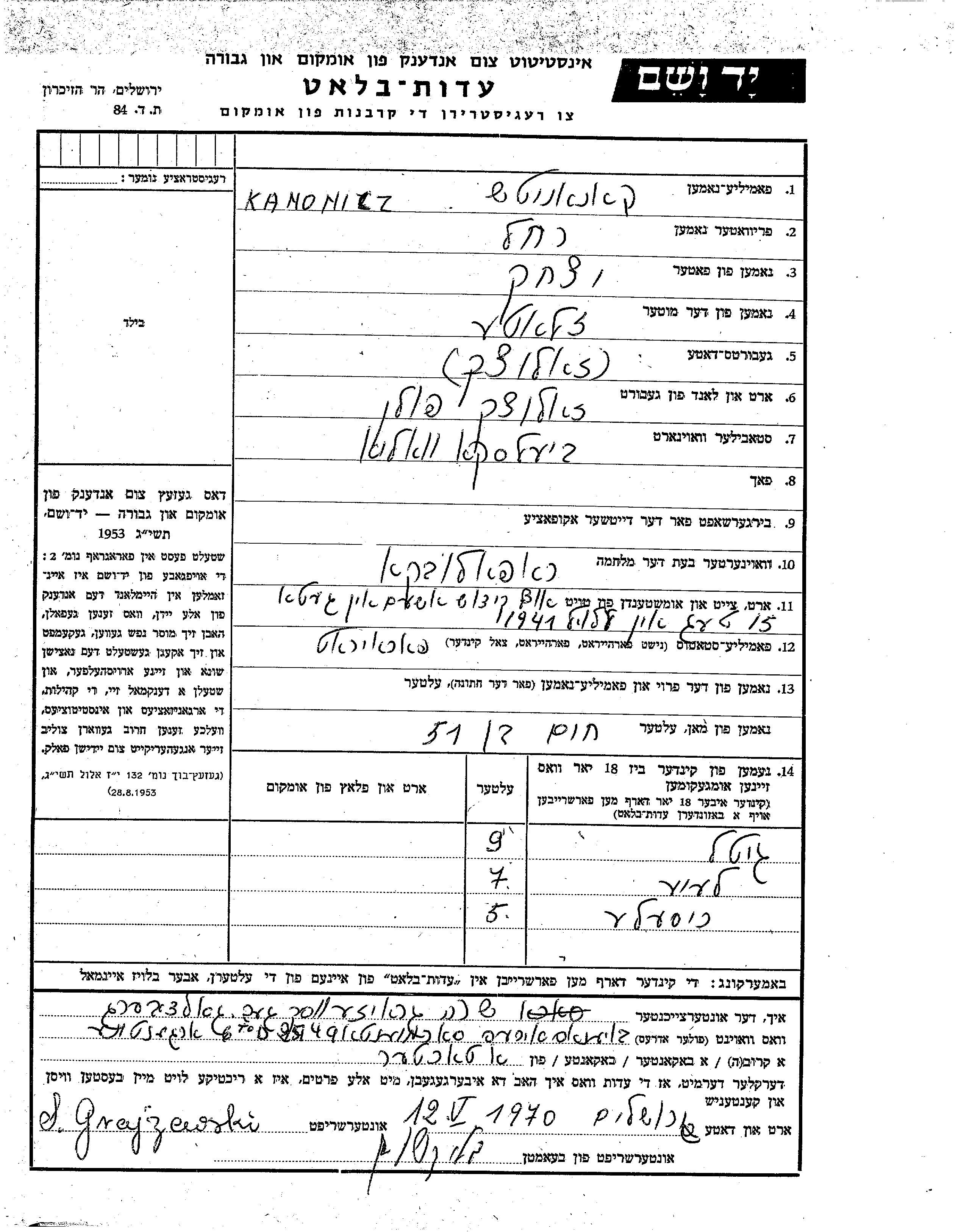 Яд Вашем - Листы свидетельских показаний Мемориального фонда