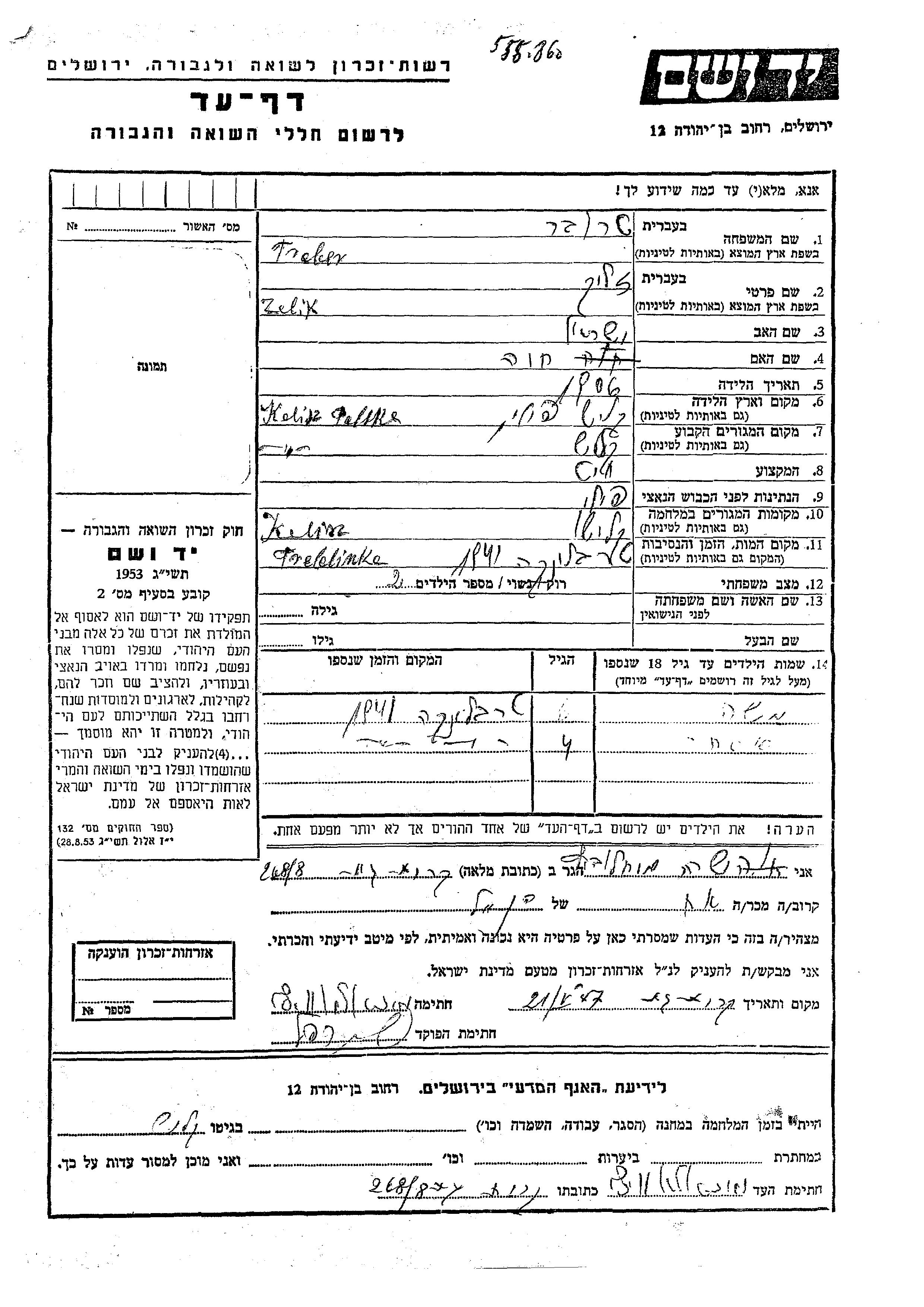 Яд Вашем - Листы свидетельских показаний Мемориального фонда