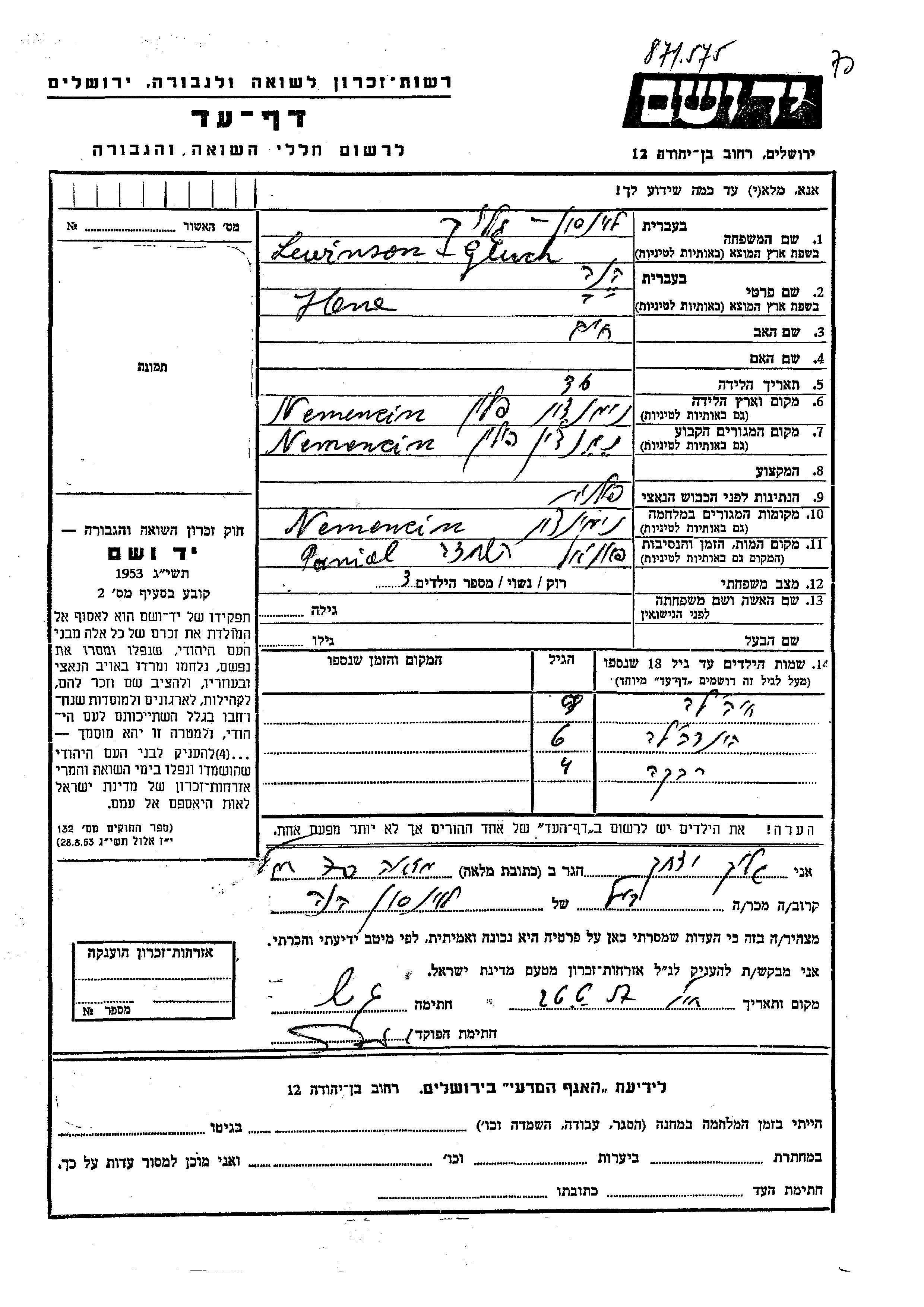 Яд Вашем - Листы свидетельских показаний Мемориального фонда