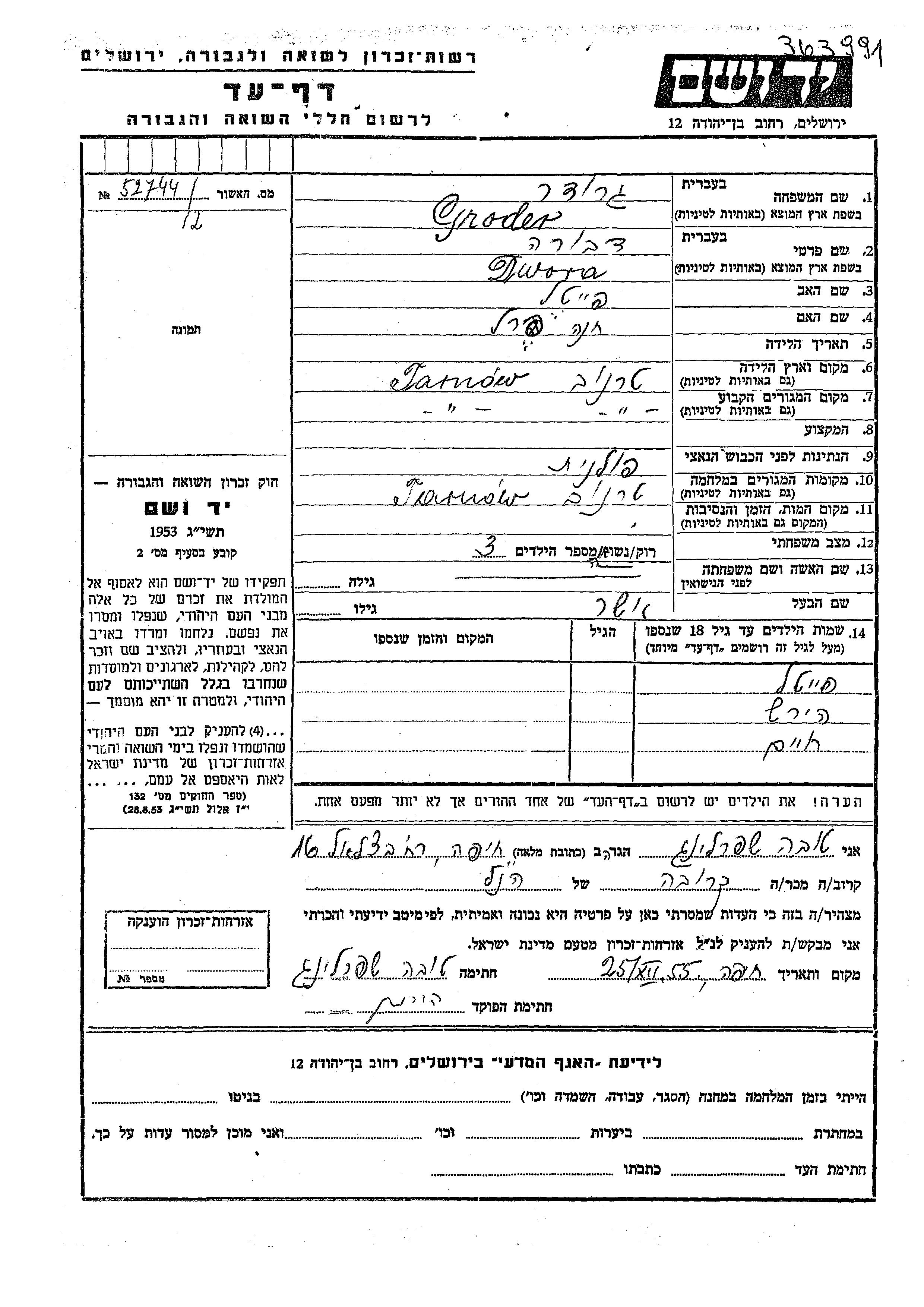 Хаим Гродер Ашер Двора. Ребенок. Место жительства до войны: Тарнув, Польша. Место во время войны: Тарнув, Польша.