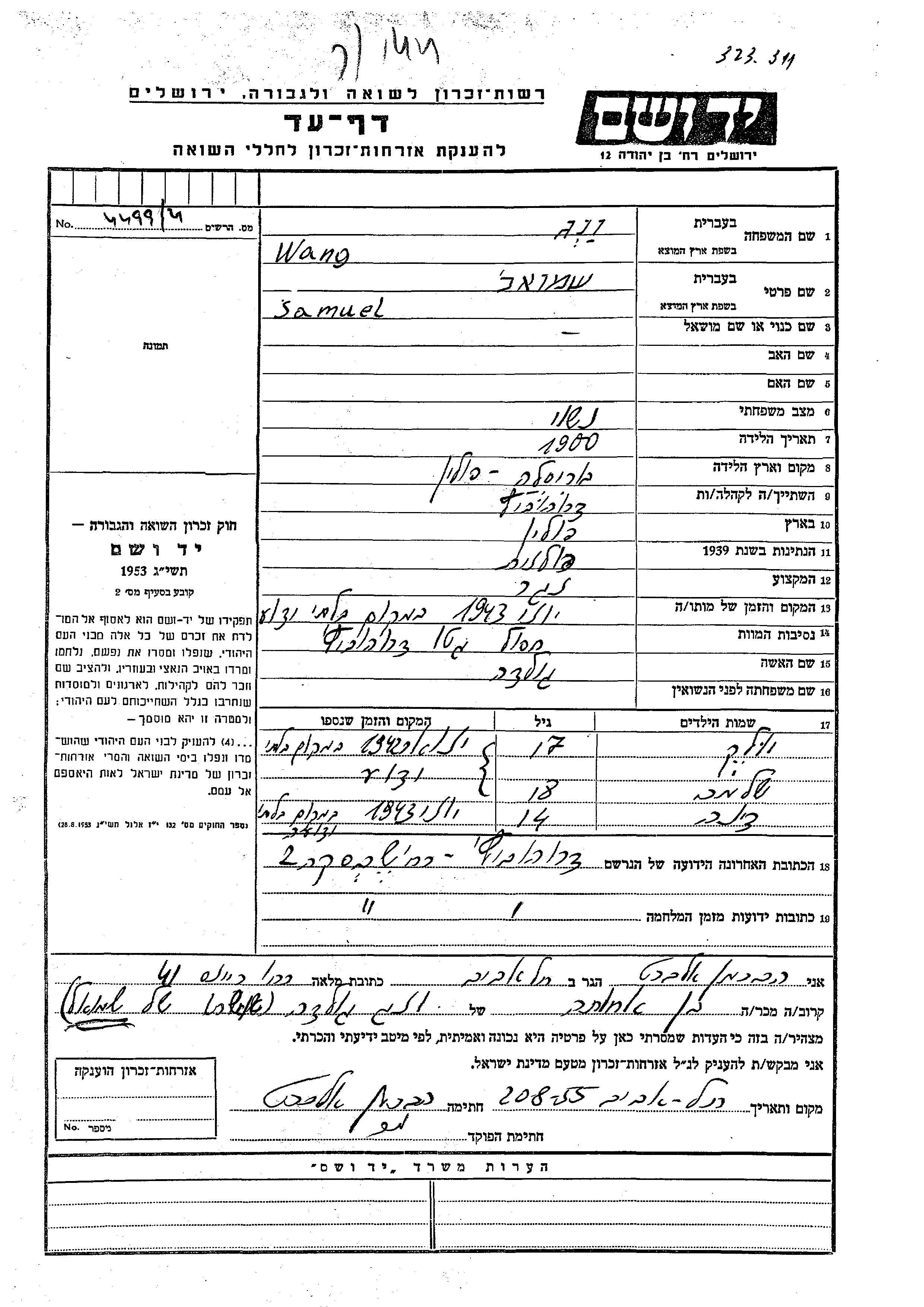 Ванг Шломо Дрогобыч, Польша Лист свидетельских показаний