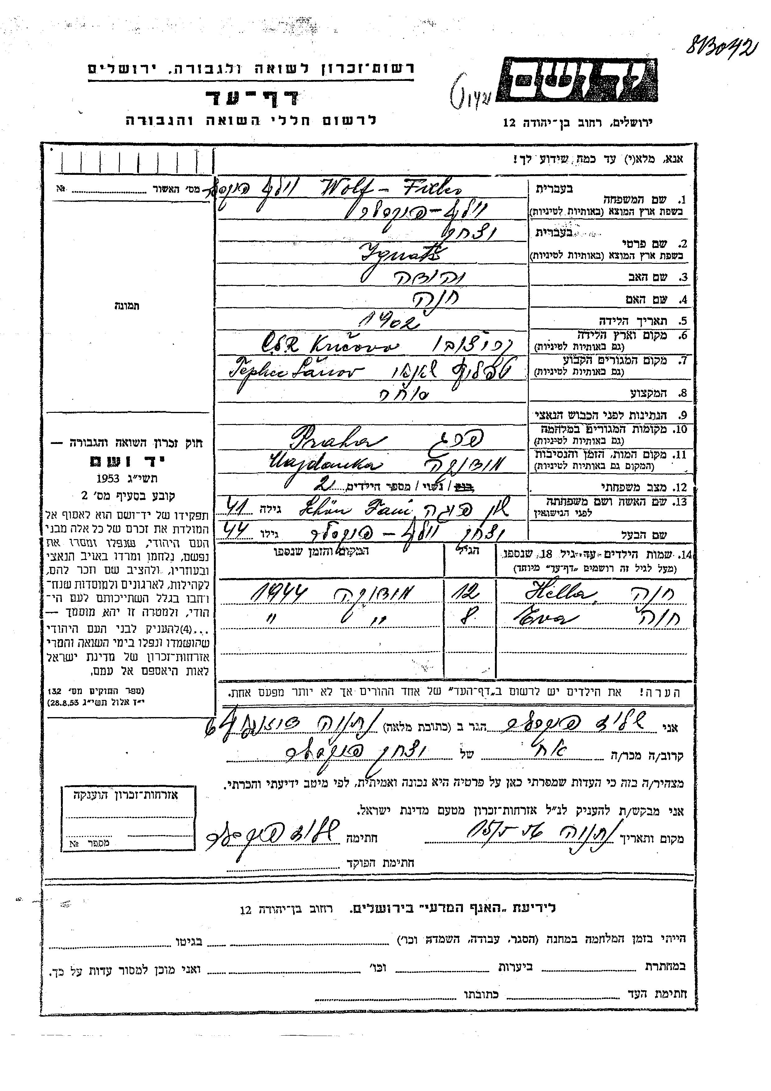 Яд Вашем - Листы свидетельских показаний Мемориального фонда