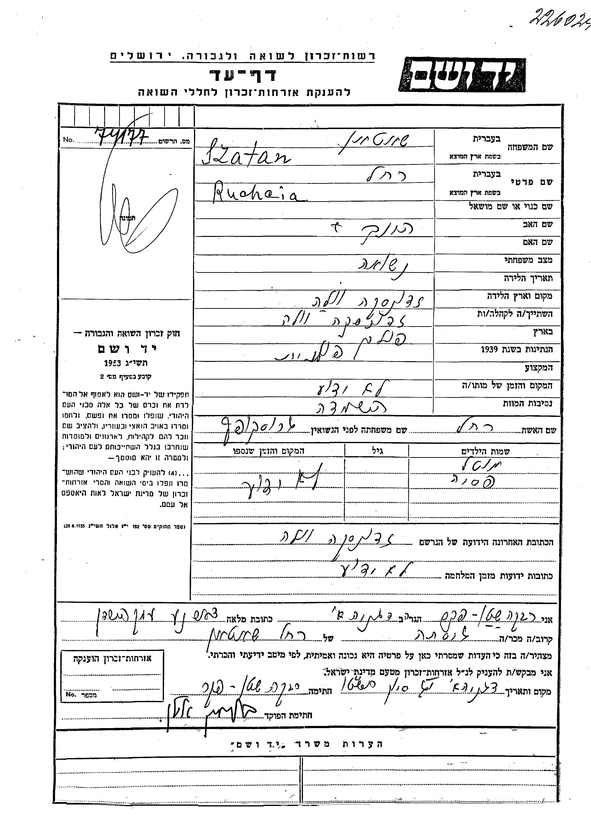 Яд Вашем - Листы свидетельских показаний Мемориального фонда