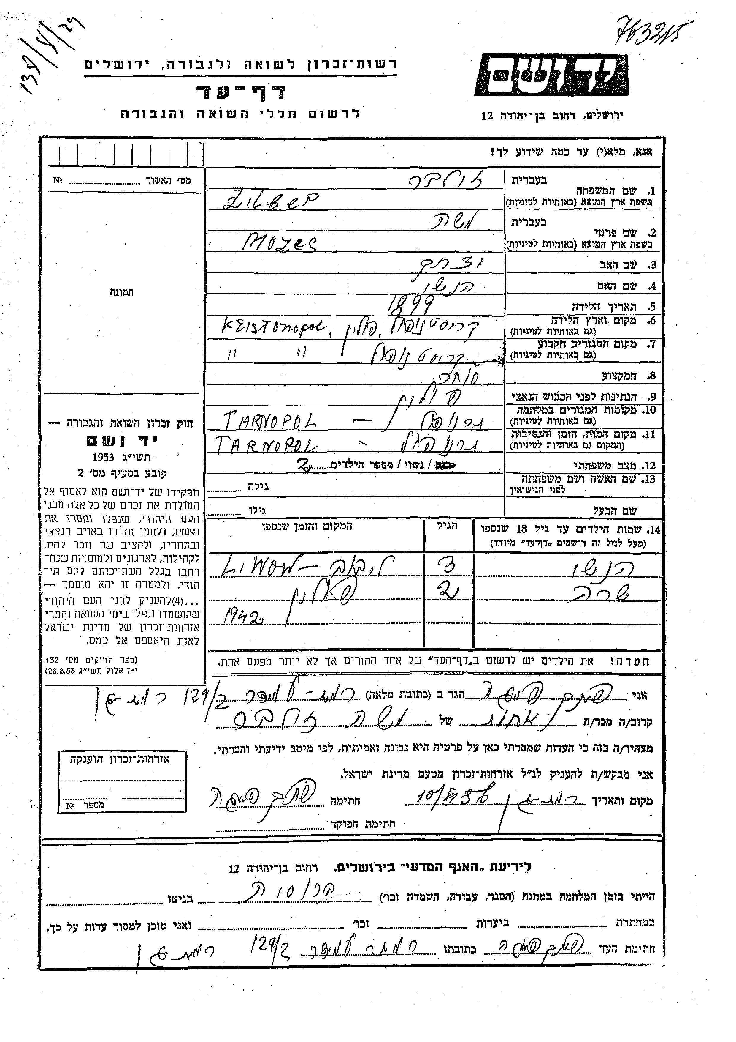 Яд Вашем - Листы свидетельских показаний Мемориального фонда