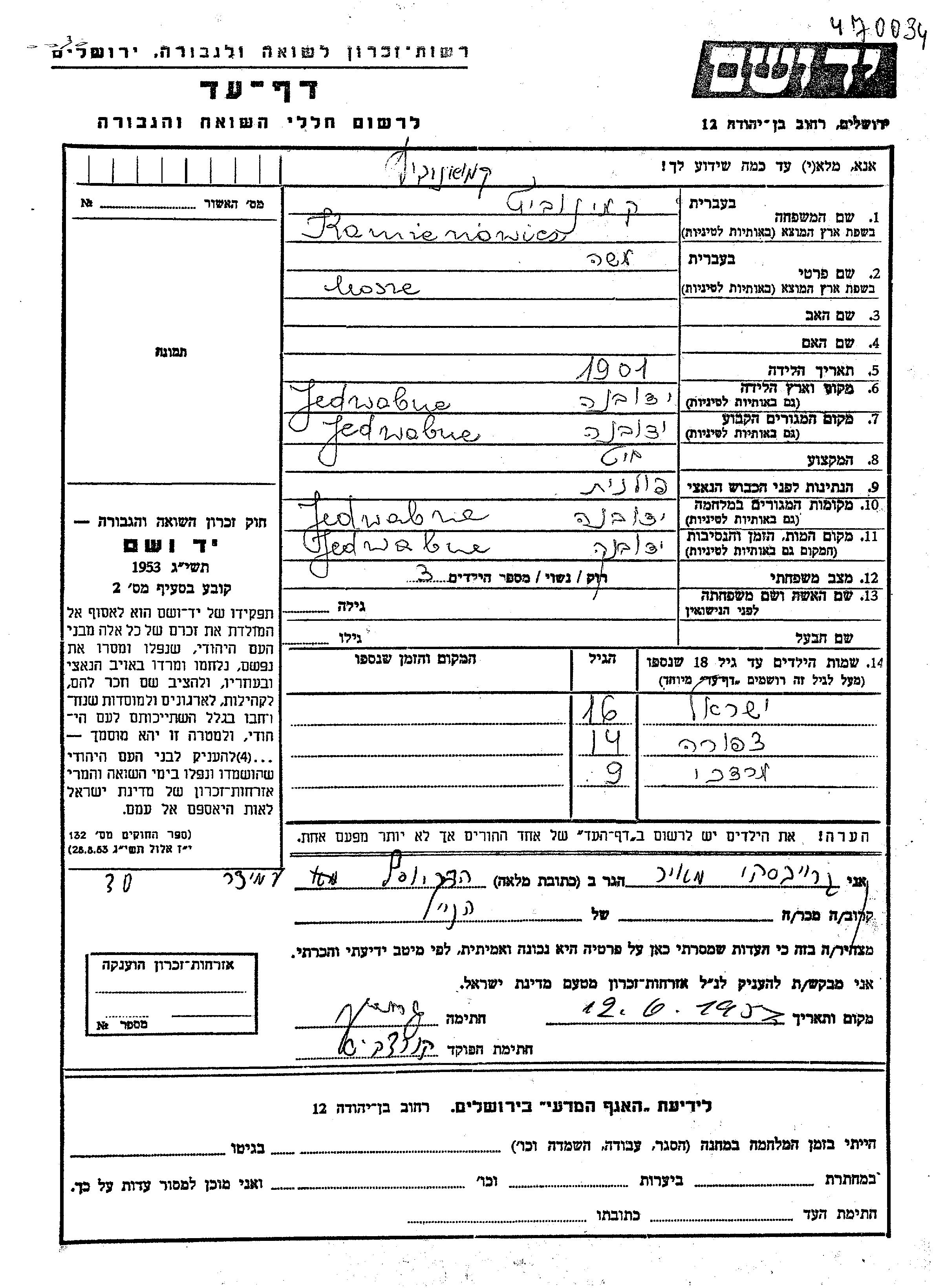 Яд Вашем - Листы свидетельских показаний Мемориального фонда