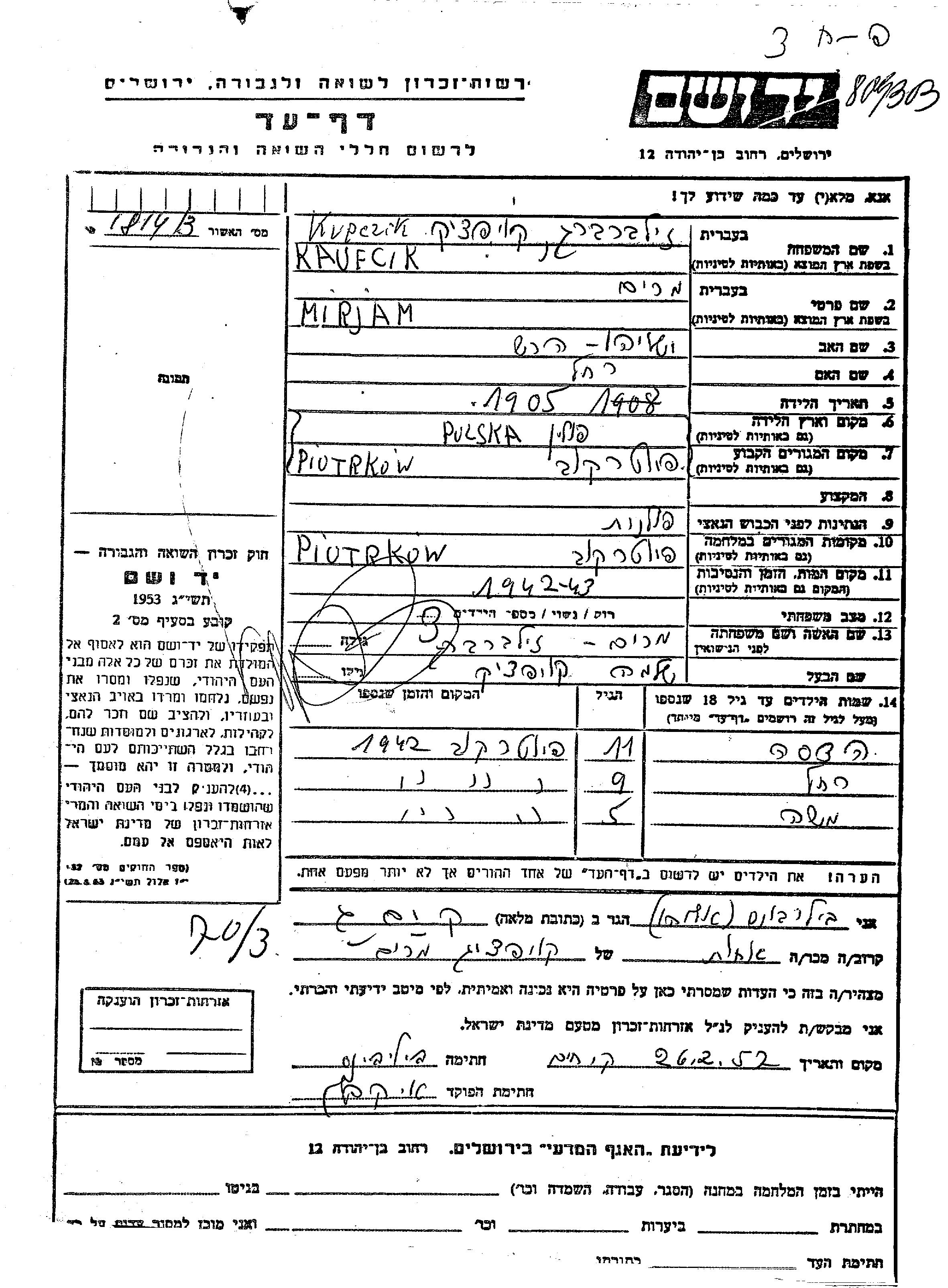 Кауфчик Моше Пётркув, Польша Лист свидетельских показаний