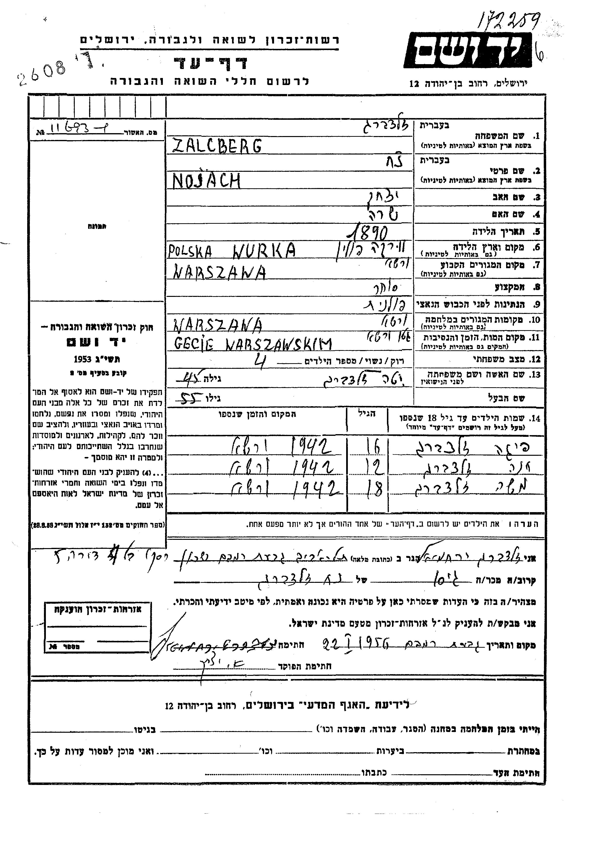 Зальцберг Моше Варшава, Польша Лист свидетельских показаний