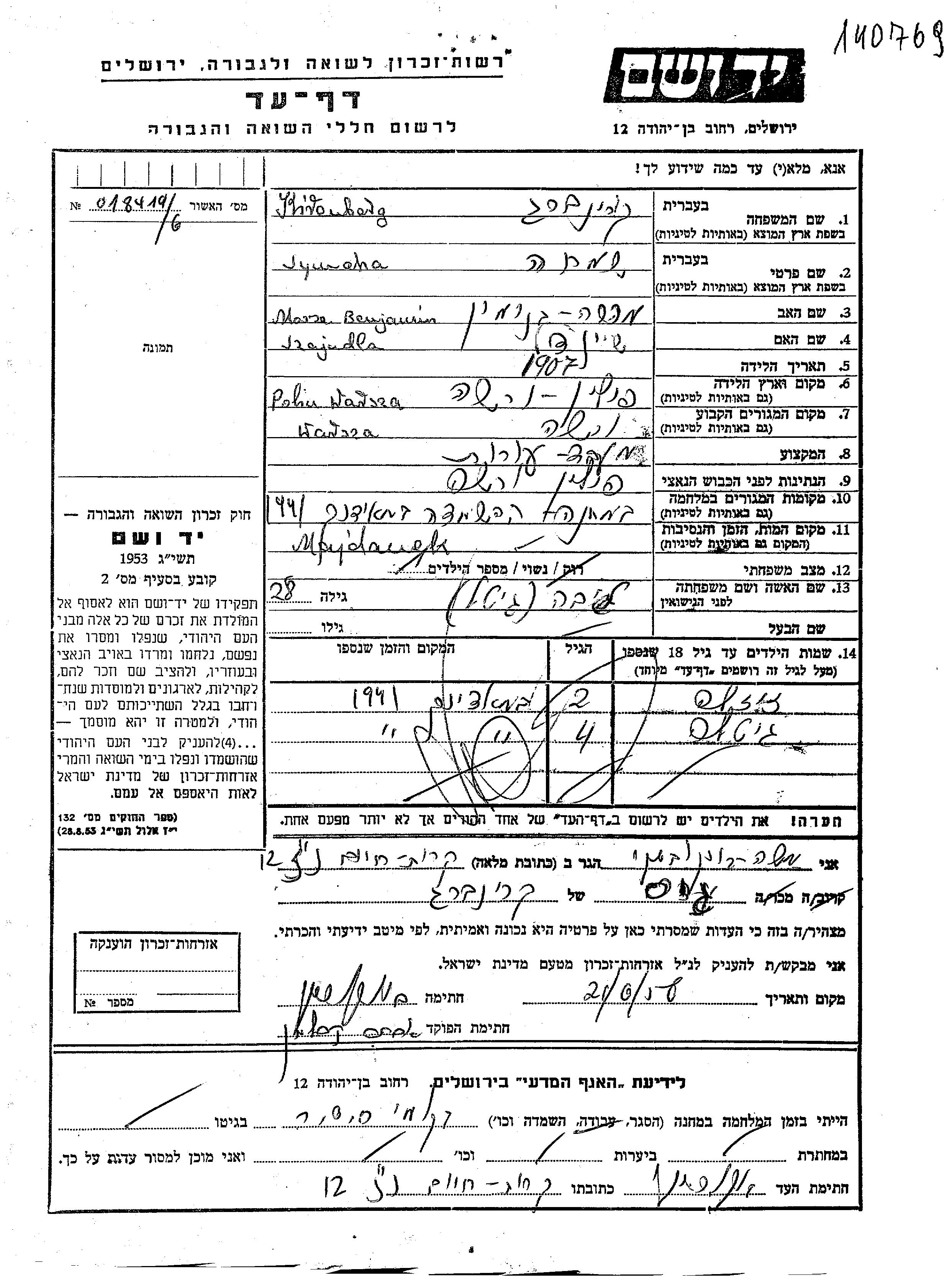 Яд Вашем - Листы свидетельских показаний Мемориального фонда