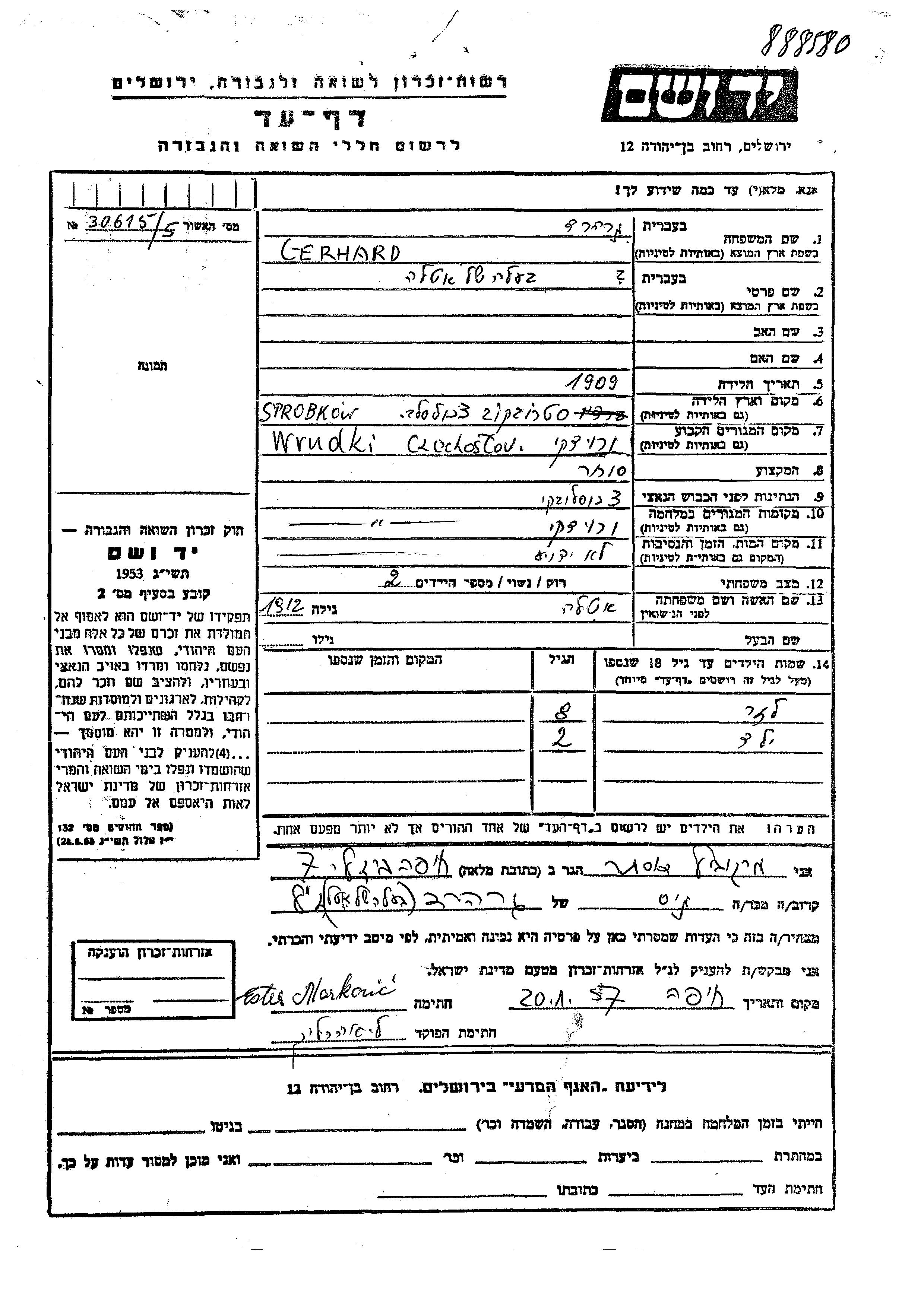 Герхард Имя неизвестно Врудки, Чехословакия Лист свидетельских показаний