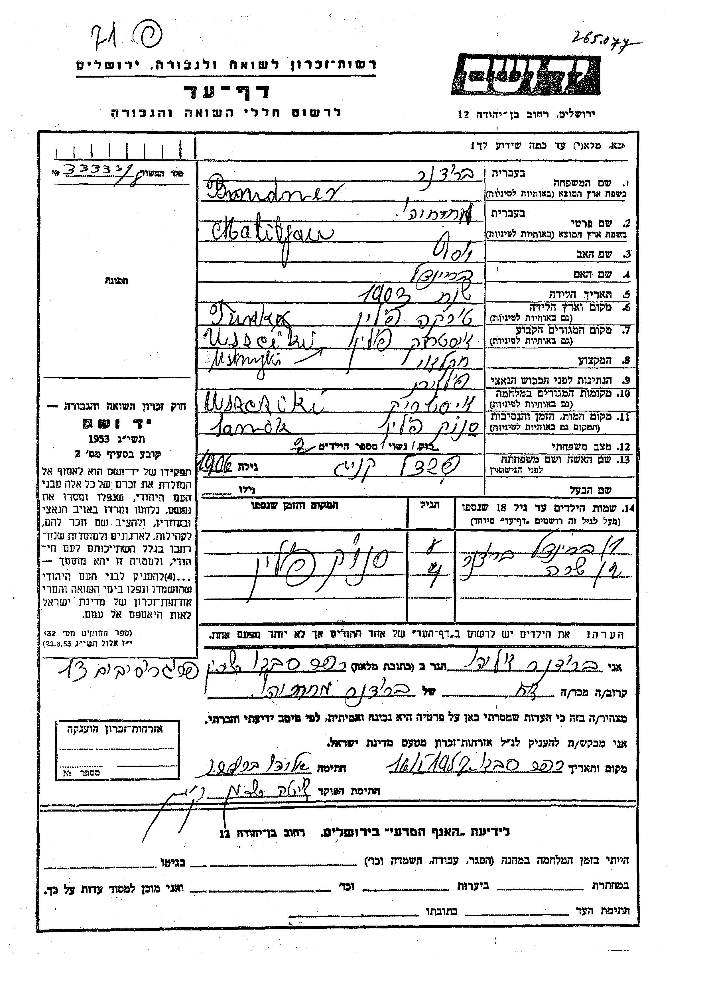 Яд Вашем - Листы свидетельских показаний Мемориального фонда
