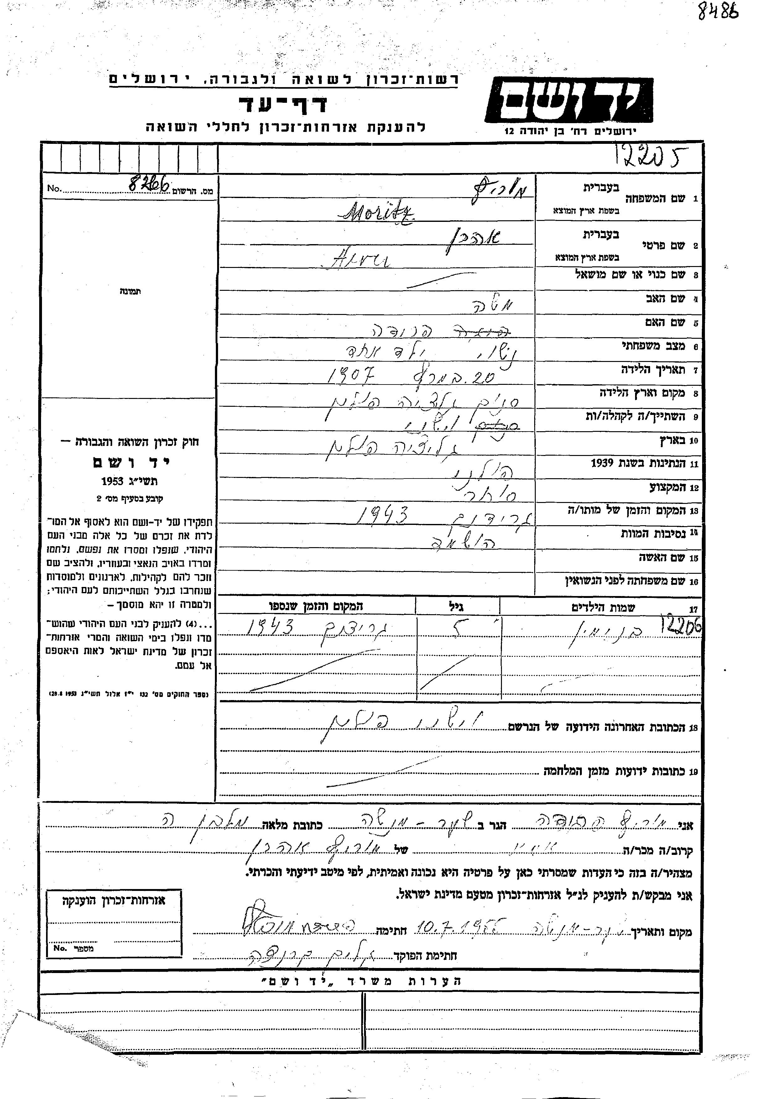 Яд Вашем - Листы свидетельских показаний Мемориального фонда