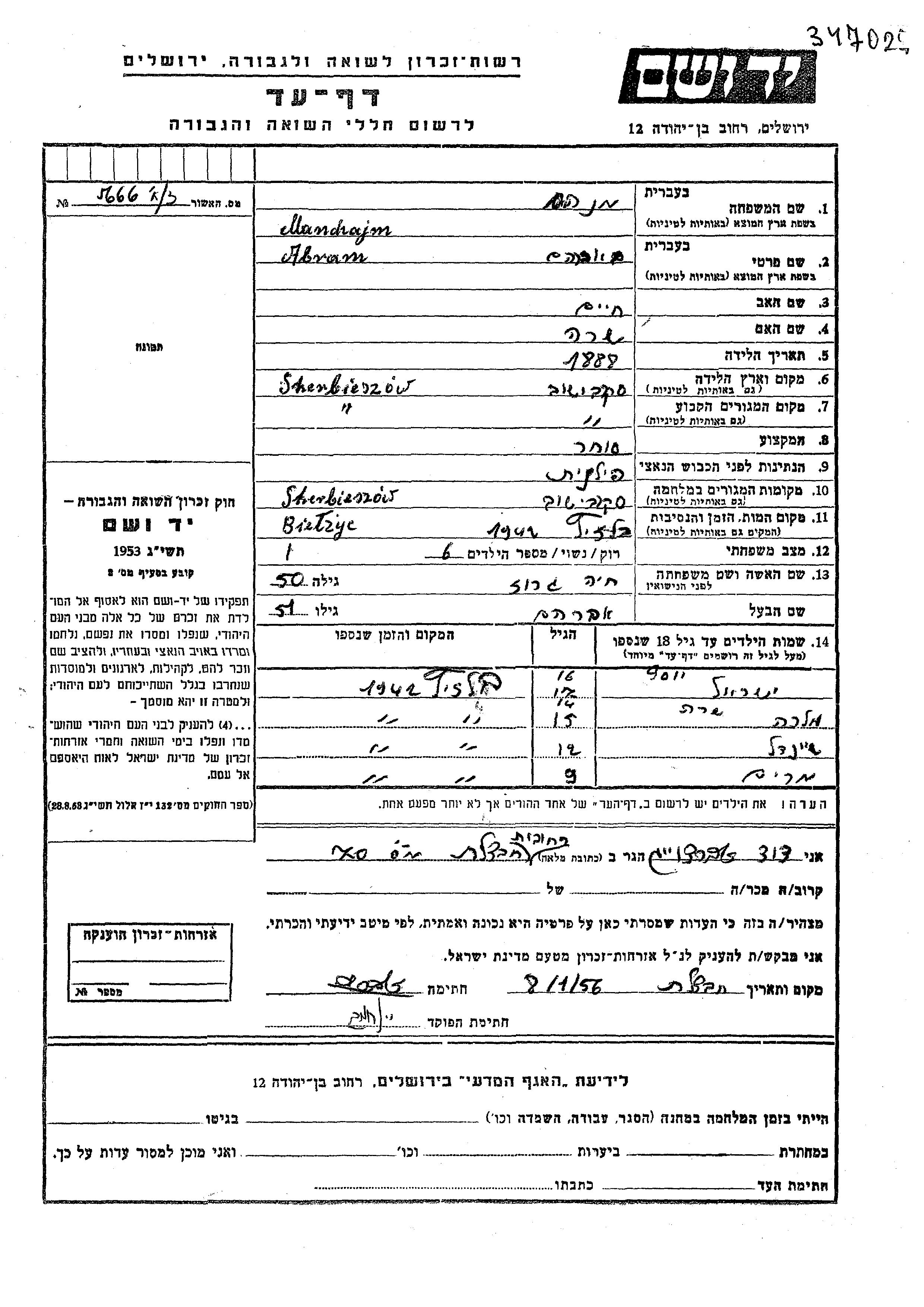 Яд Вашем - Листы свидетельских показаний Мемориального фонда